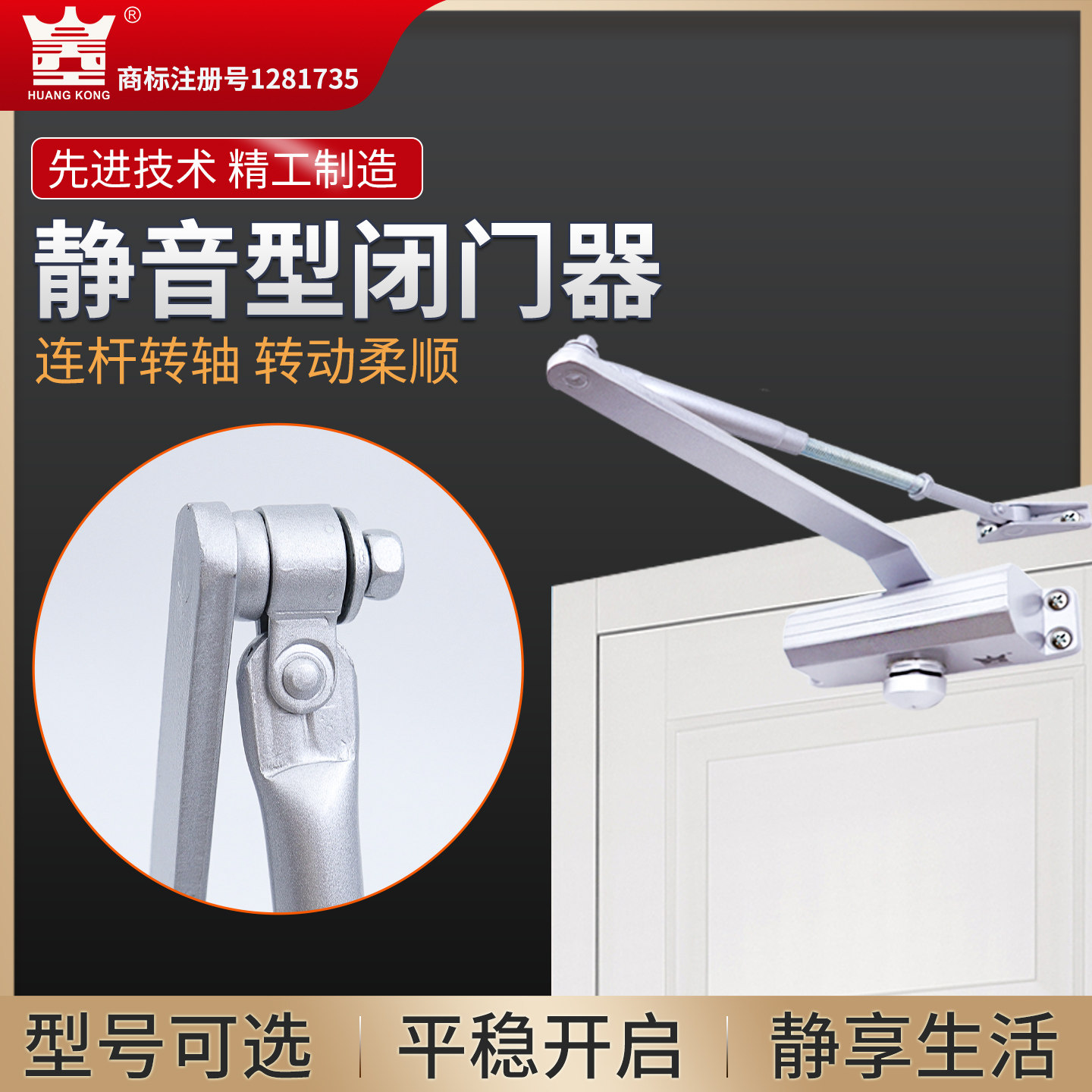 HUANGKONG闭门器液压缓冲180度自动关门器家用大号防火门90度定位