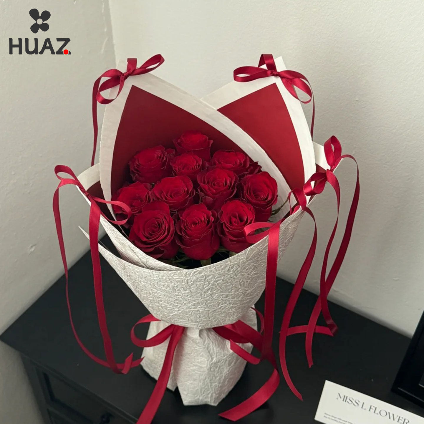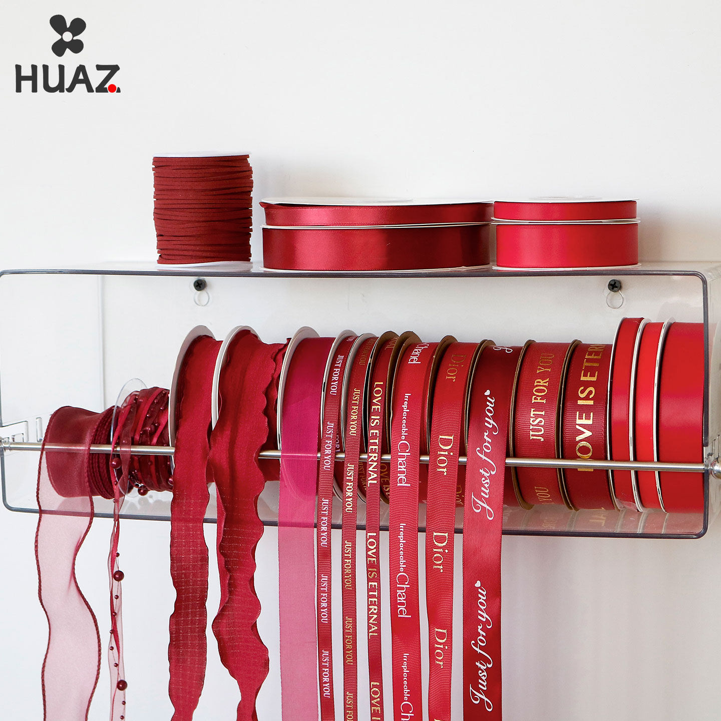 酒红色系丝带鲜花水果礼盒彩带