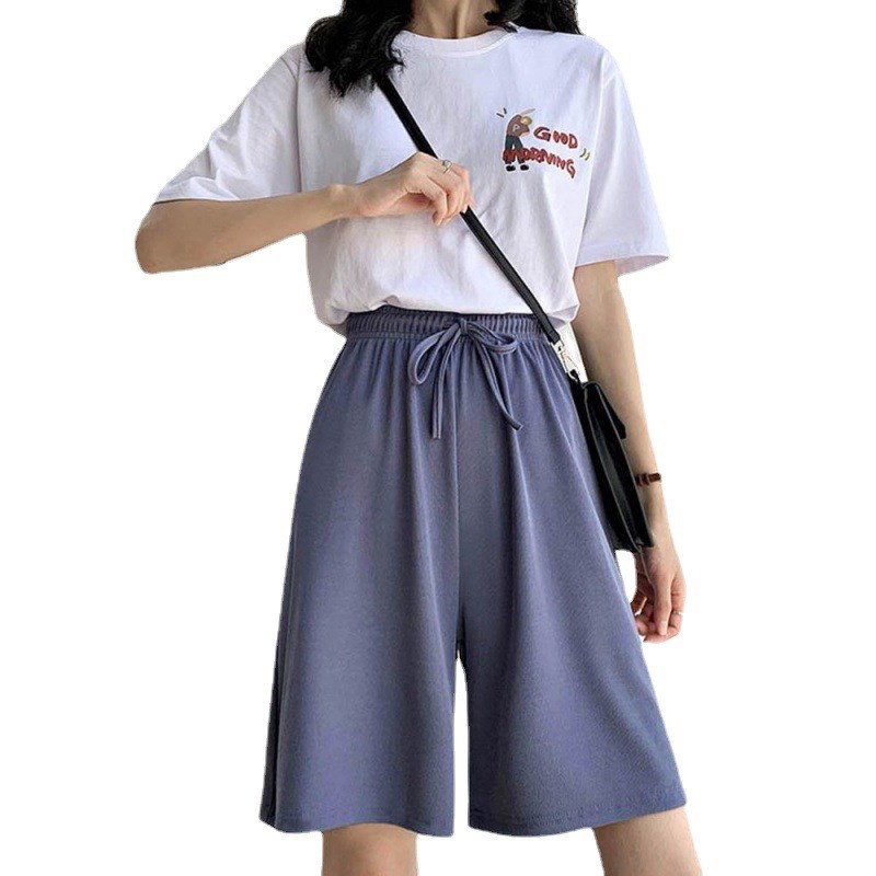 冰丝五分短裤女春夏2024外穿运动休闲松紧高腰百搭居家阔腿裤中款