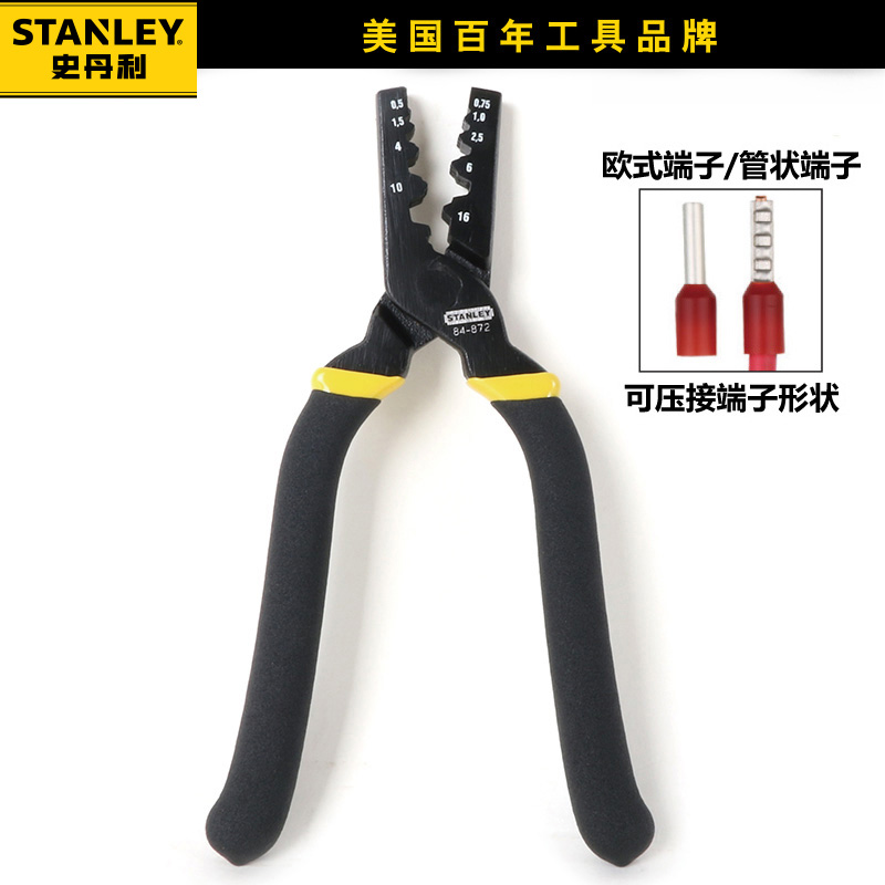 史丹利冷压端子压线钳电工专用欧式接线管型小型压线钳84-872