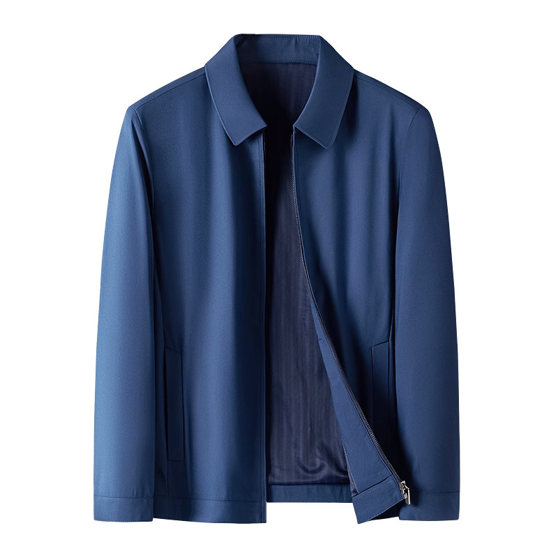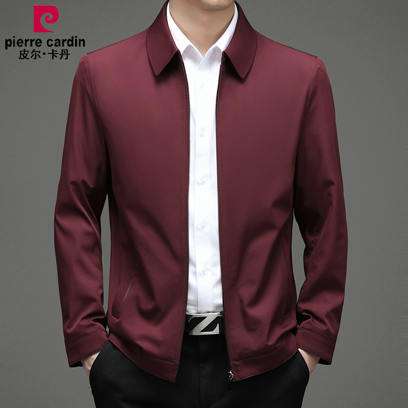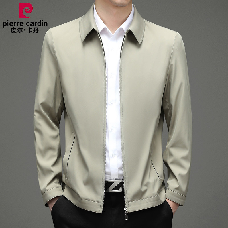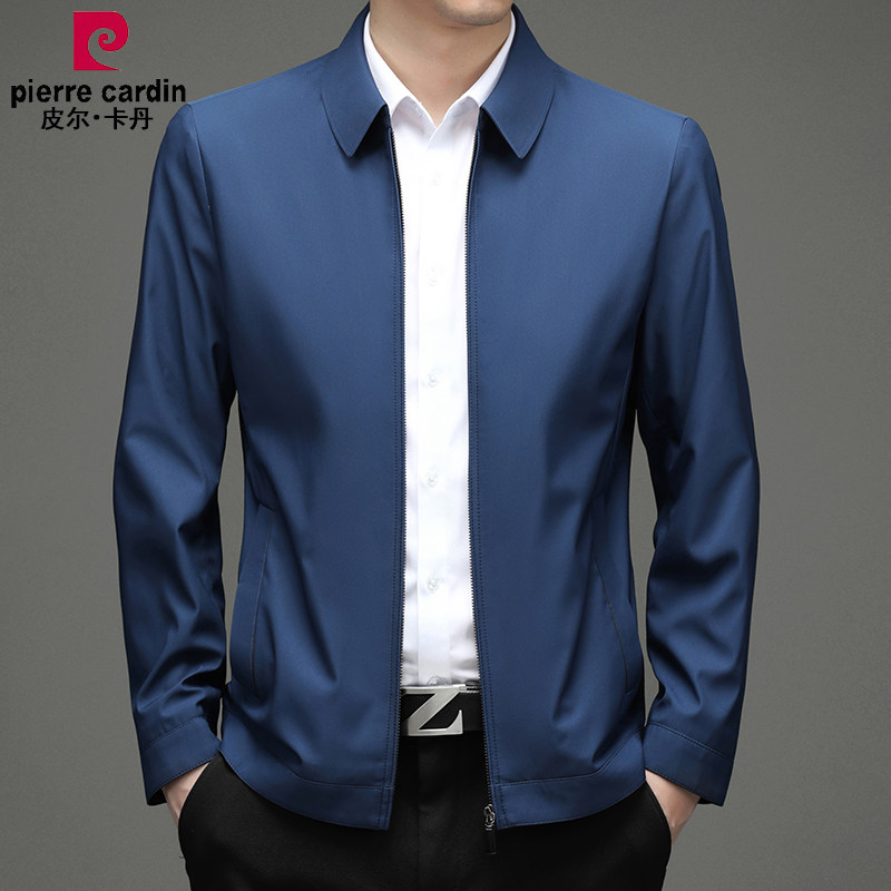 皮尔卡丹春季新款桑蚕丝夹克男翻领中年商务爸爸装公务员行政外套