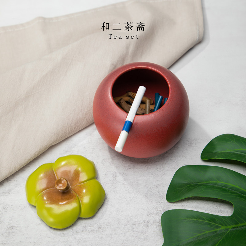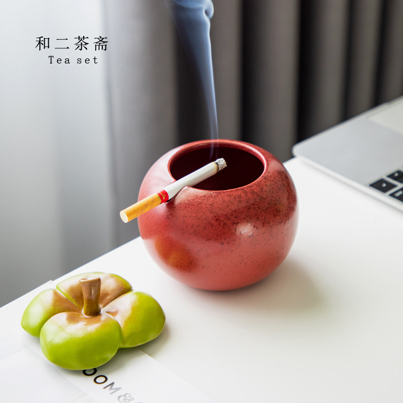 和二茶斋山竹烟灰缸带盖防飞灰烟味陶瓷创意个性大容量办公室摆件