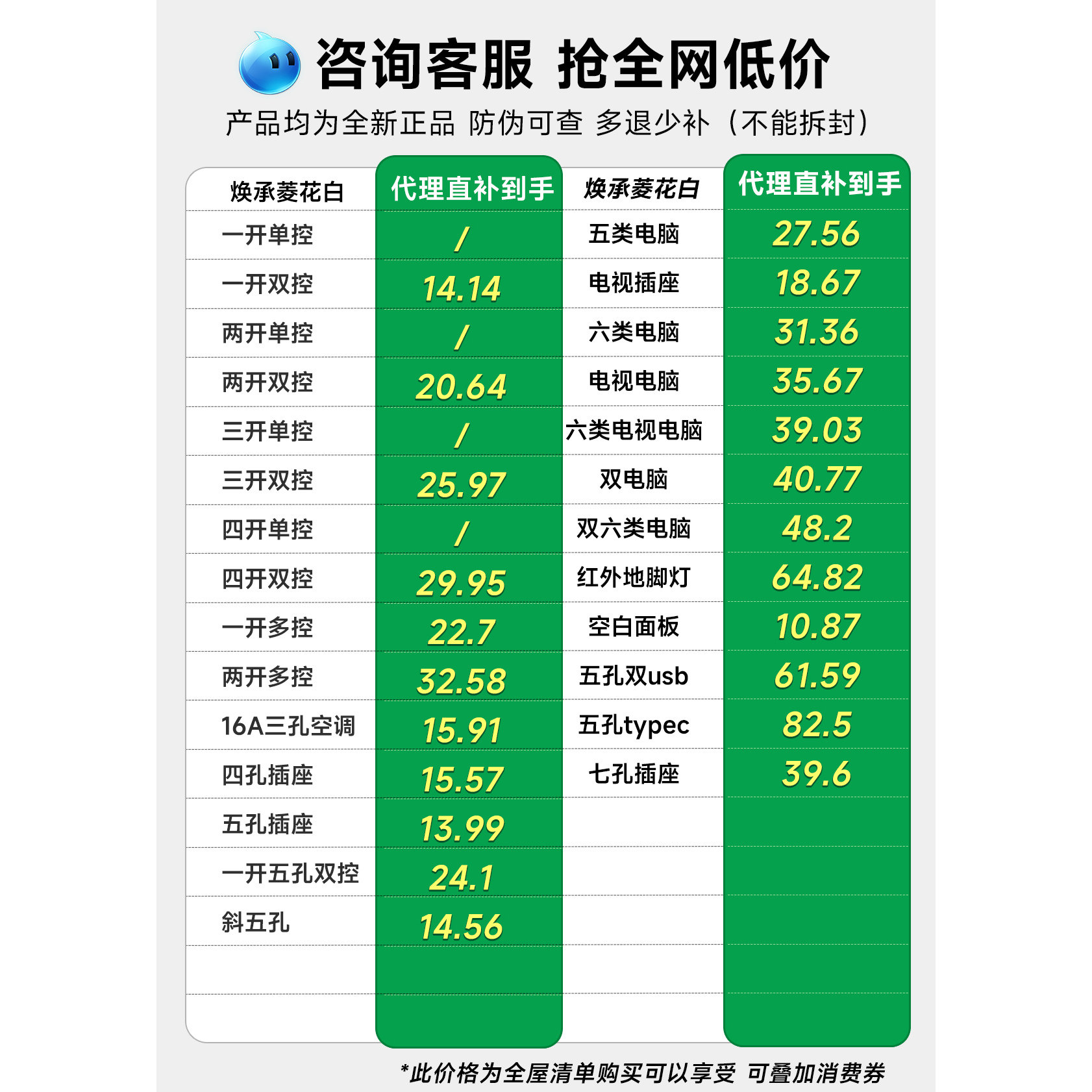 松下焕承面板菱花白开关插座家装86型五孔/一开五孔/一二三四开