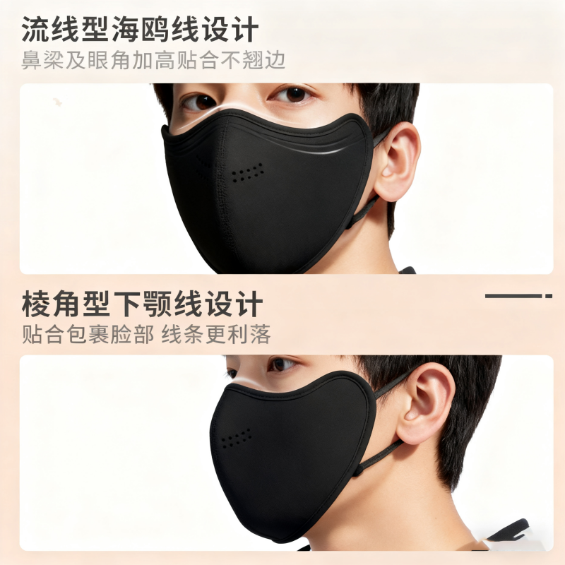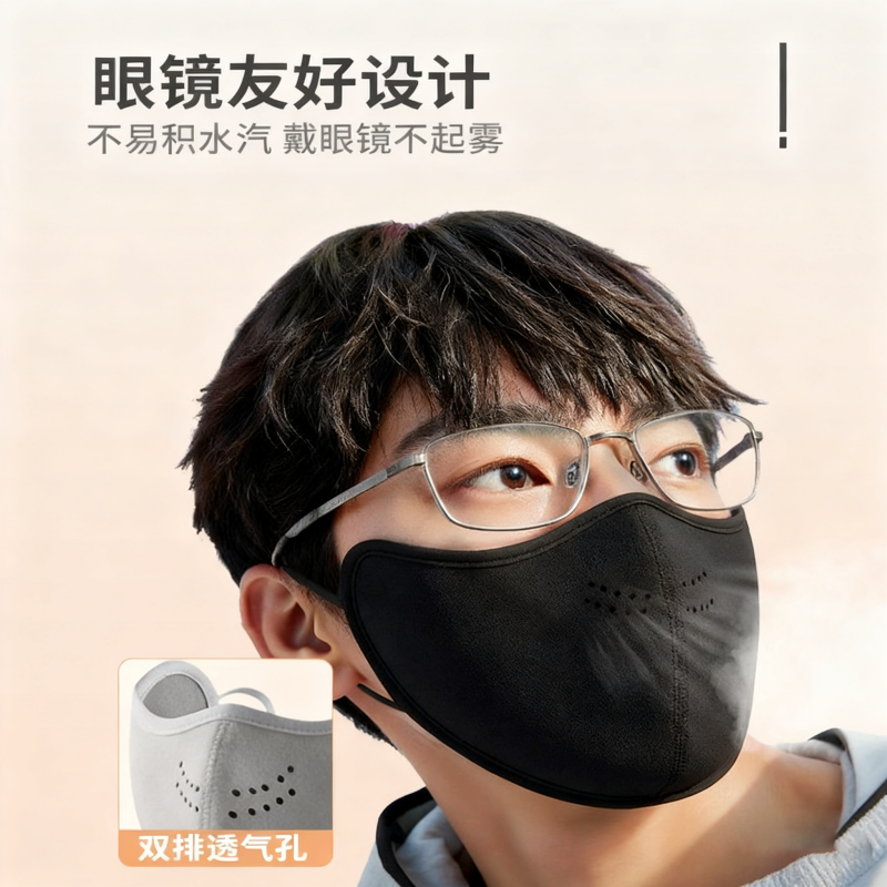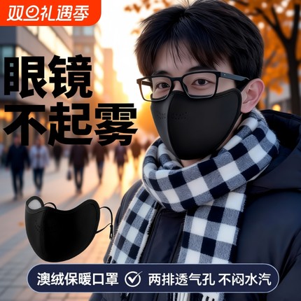 保暖口罩戴眼镜不起雾男士高颜值2025新款秋冬季骑行防风寒3d立体
