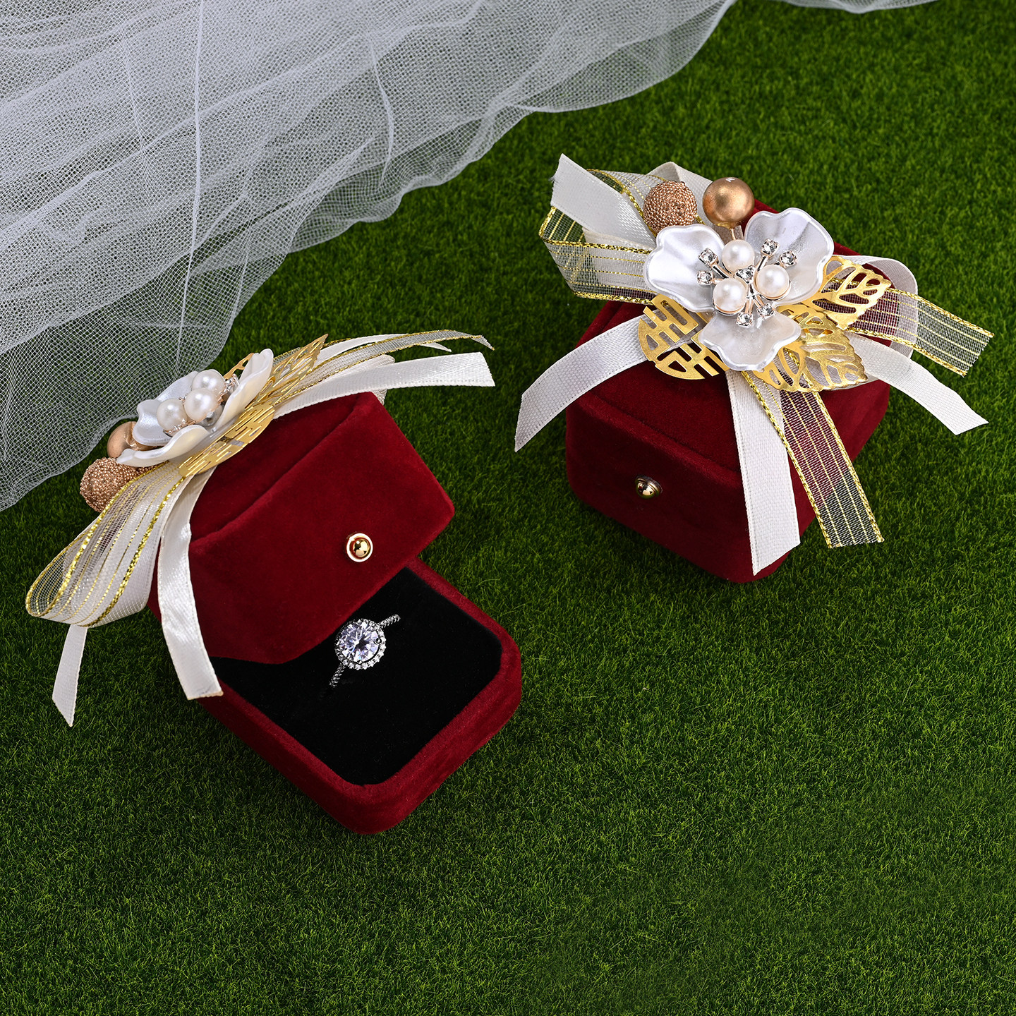 戒指盒婚礼喜嫁求定结婚礼红色绒钻戒对戒盒子首饰收纳盒七夕送礼