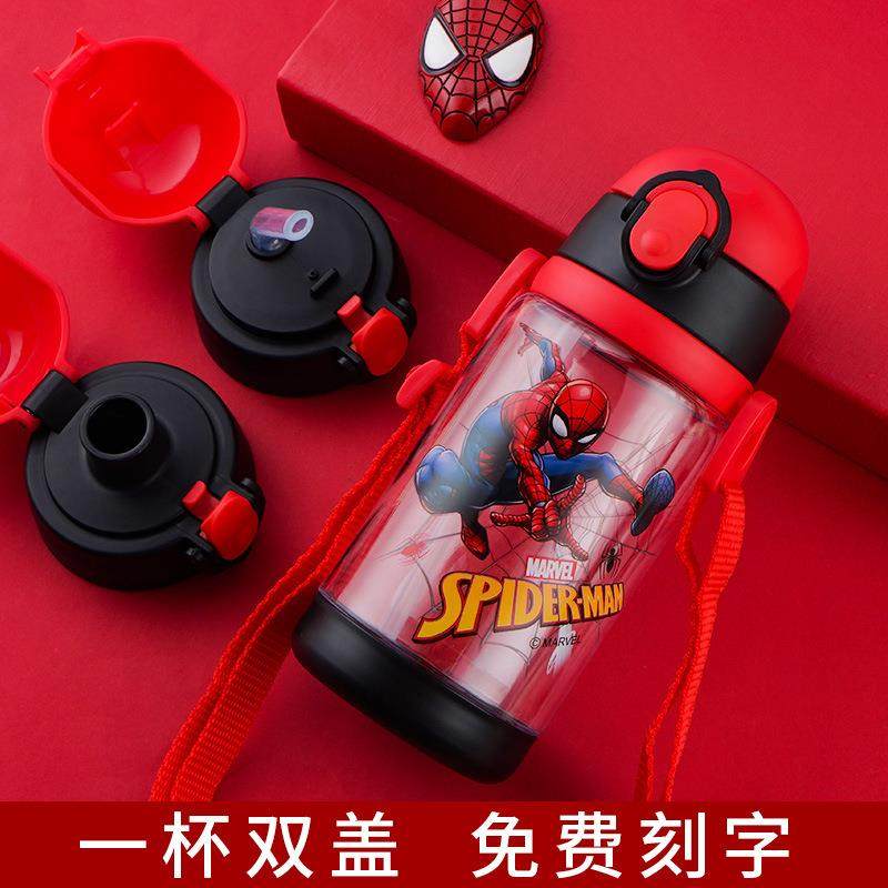 迪士尼儿童水杯带吸管幼儿园宝宝直饮水壶可爱蜘蛛侠便携防摔杯子