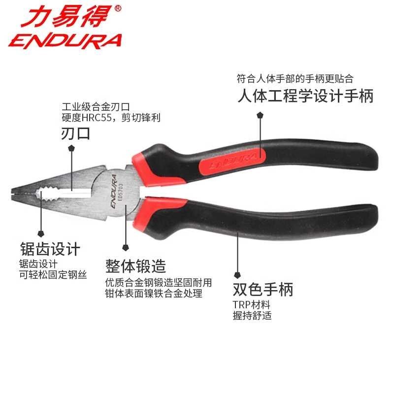 ENDURA力易得老虎钳电工专用省力钢丝钳工业级多功能家用五金工具