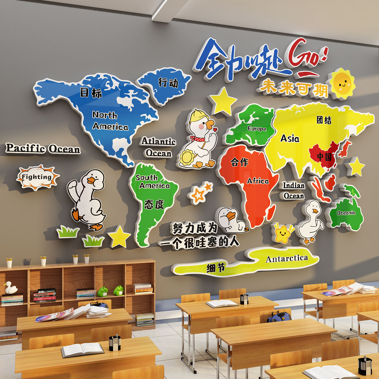 世界地图墙面装饰外贸公司办公室氛围布置企业文化墙贴纸励志标语