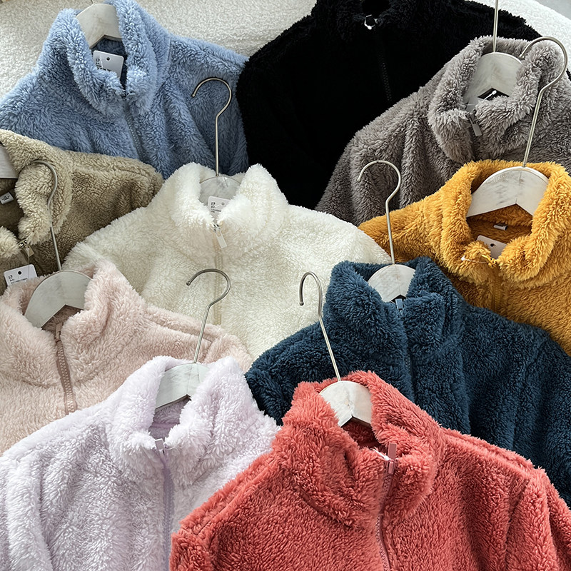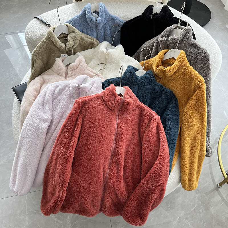 大厂订单!秋冬款宽松厚实保暖显瘦立领羊羔毛摇粒绒短外套女