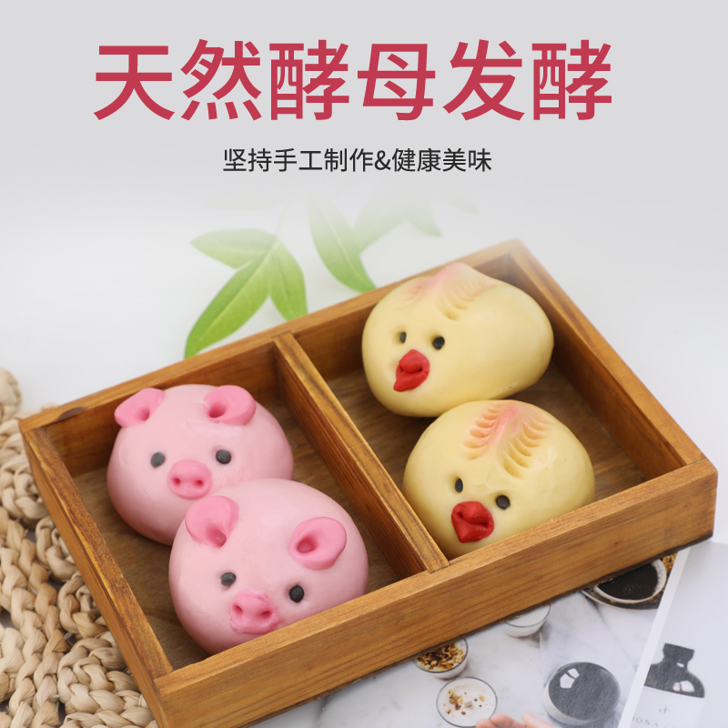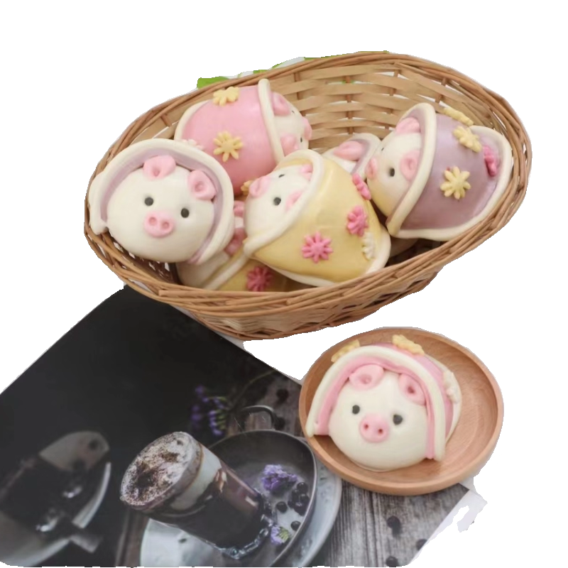 铁锅炖小猪盖被果蔬儿童馒头早餐酒店餐饮点心包子手工速冻卡通包
