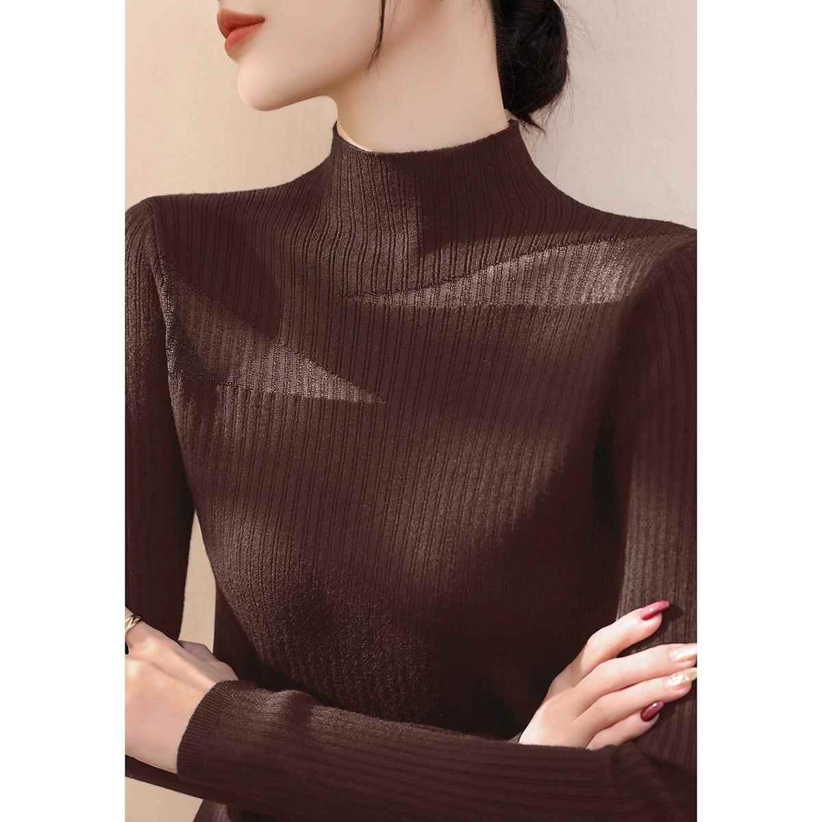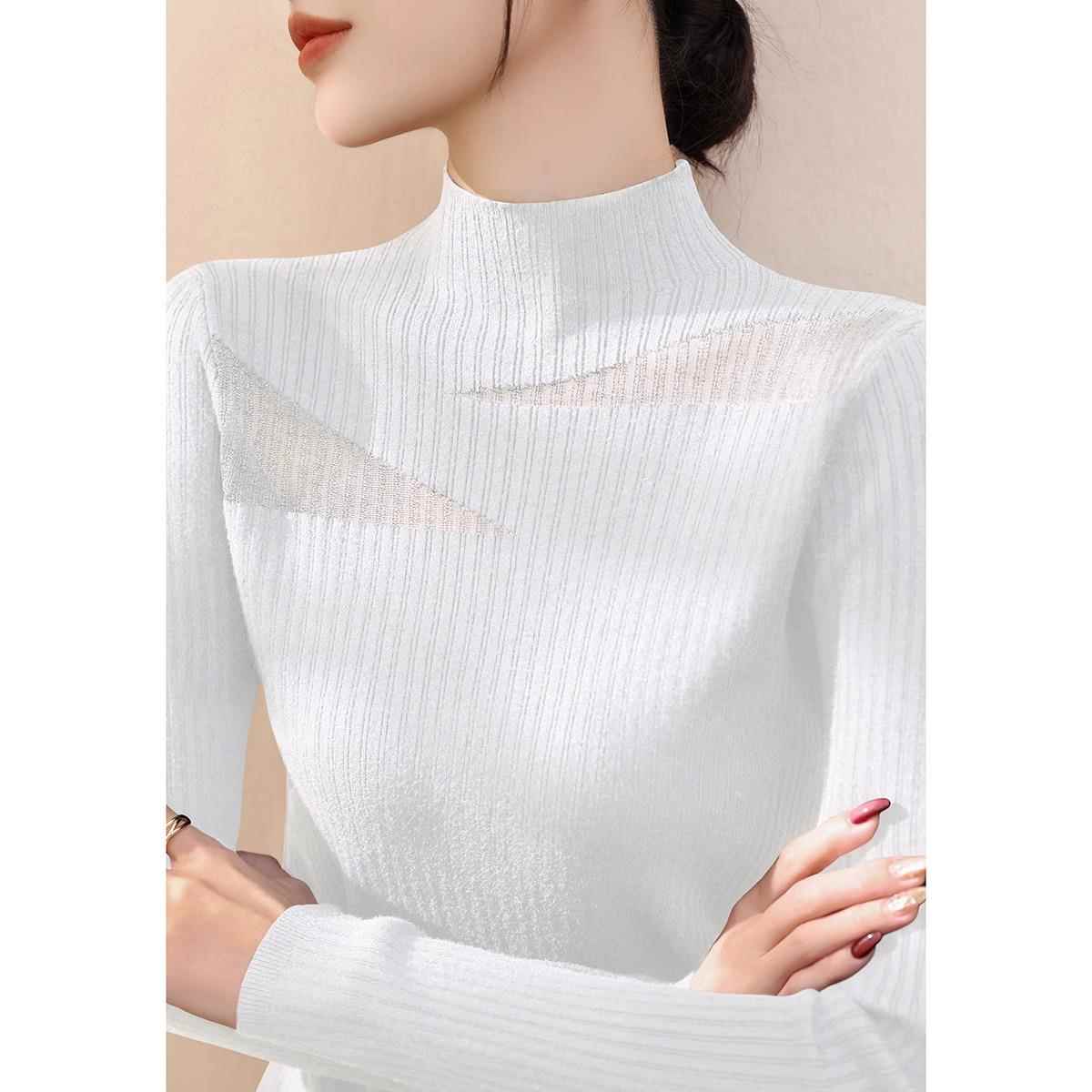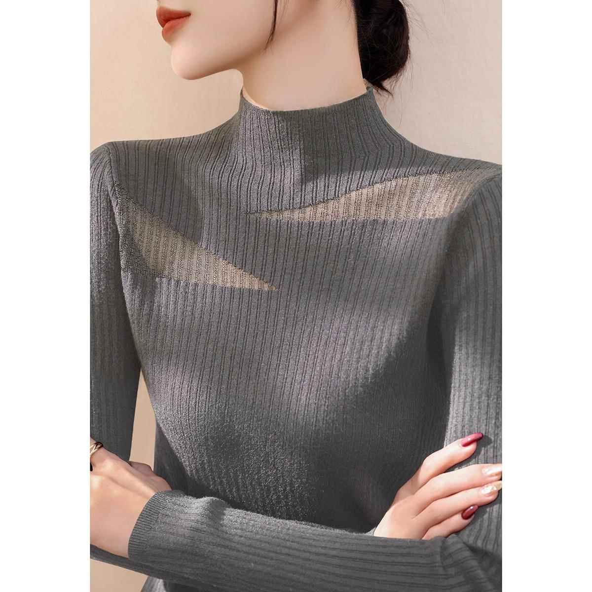 黑色半高领蕾丝网纱针织衫女秋冬修身毛衣内搭打底衫上衣1021z