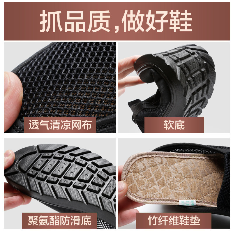 老北京布鞋男款夏季网鞋网面透气休闲舒适软底一脚蹬中老年爸爸鞋