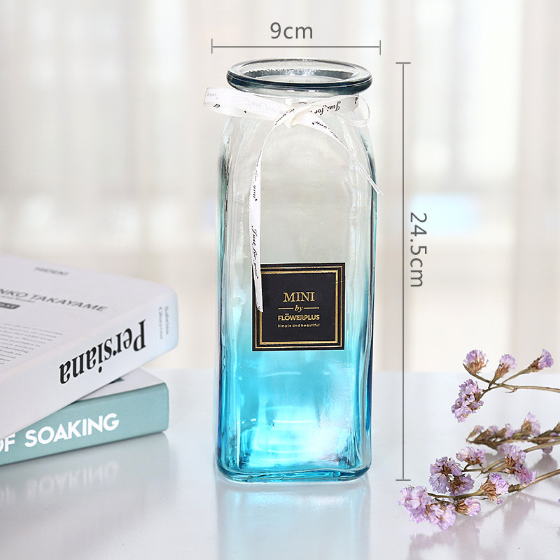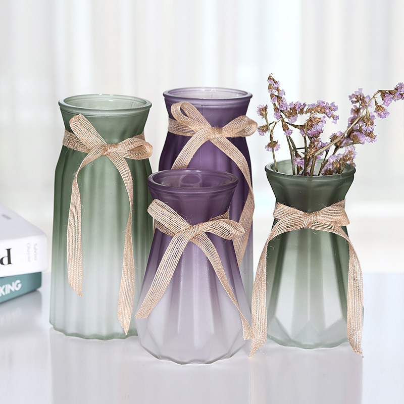 玻璃花瓶透明彩色磨砂水培植物富贵竹百合客厅装饰摆件欧式插花瓶