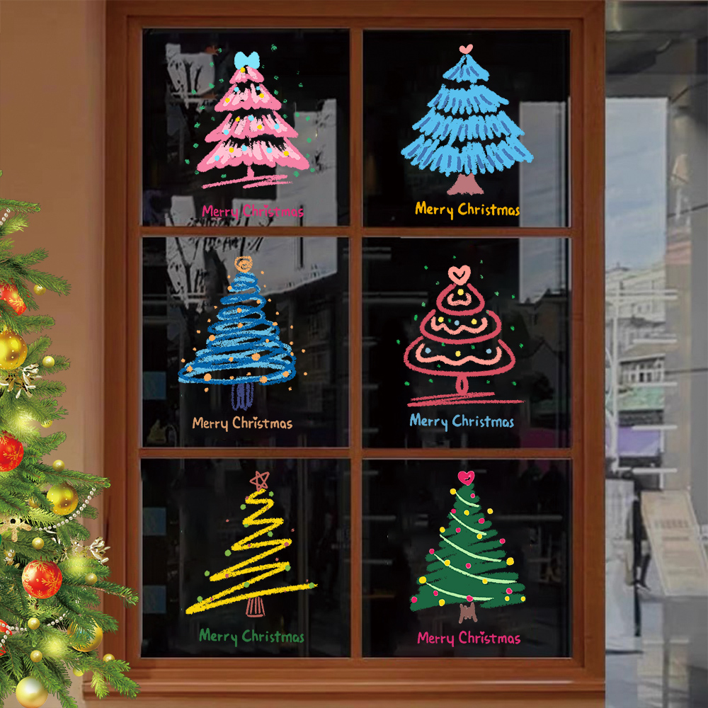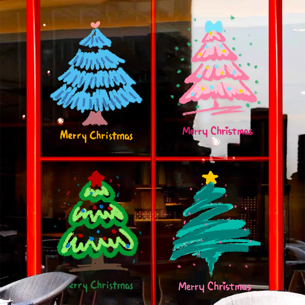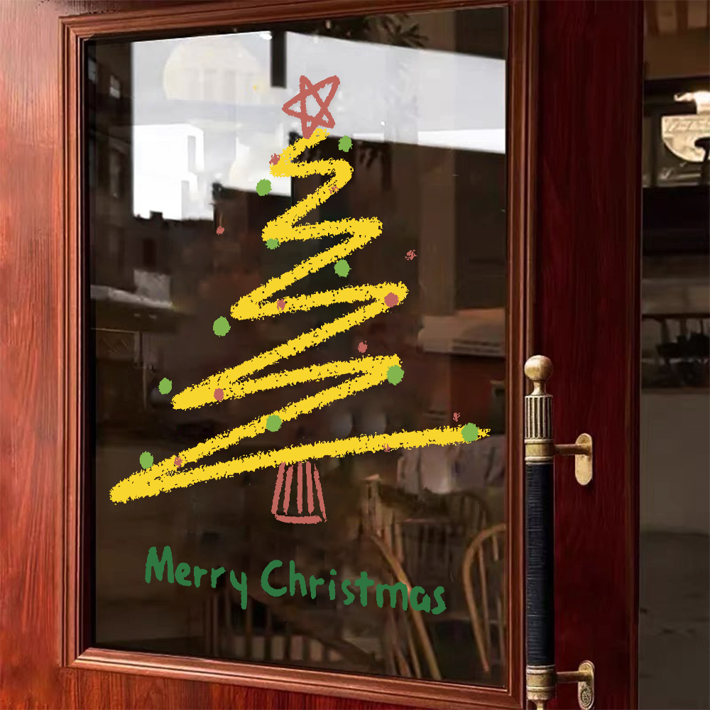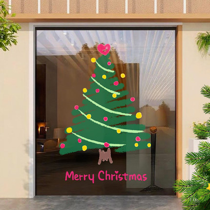 2026圣诞节新年玻璃橱窗装饰贴纸耶诞圣诞树布置门贴静电窗花窗贴