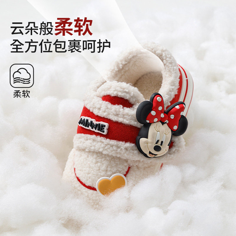 儿童棉拖鞋包跟秋冬新款幼儿园室内家居毛绒保暖迪士尼拖鞋女童