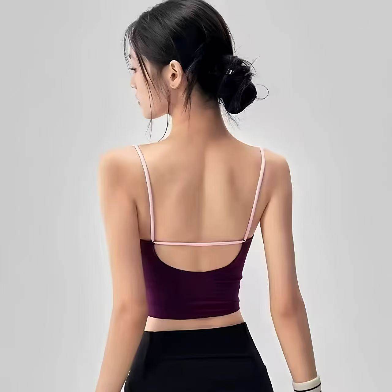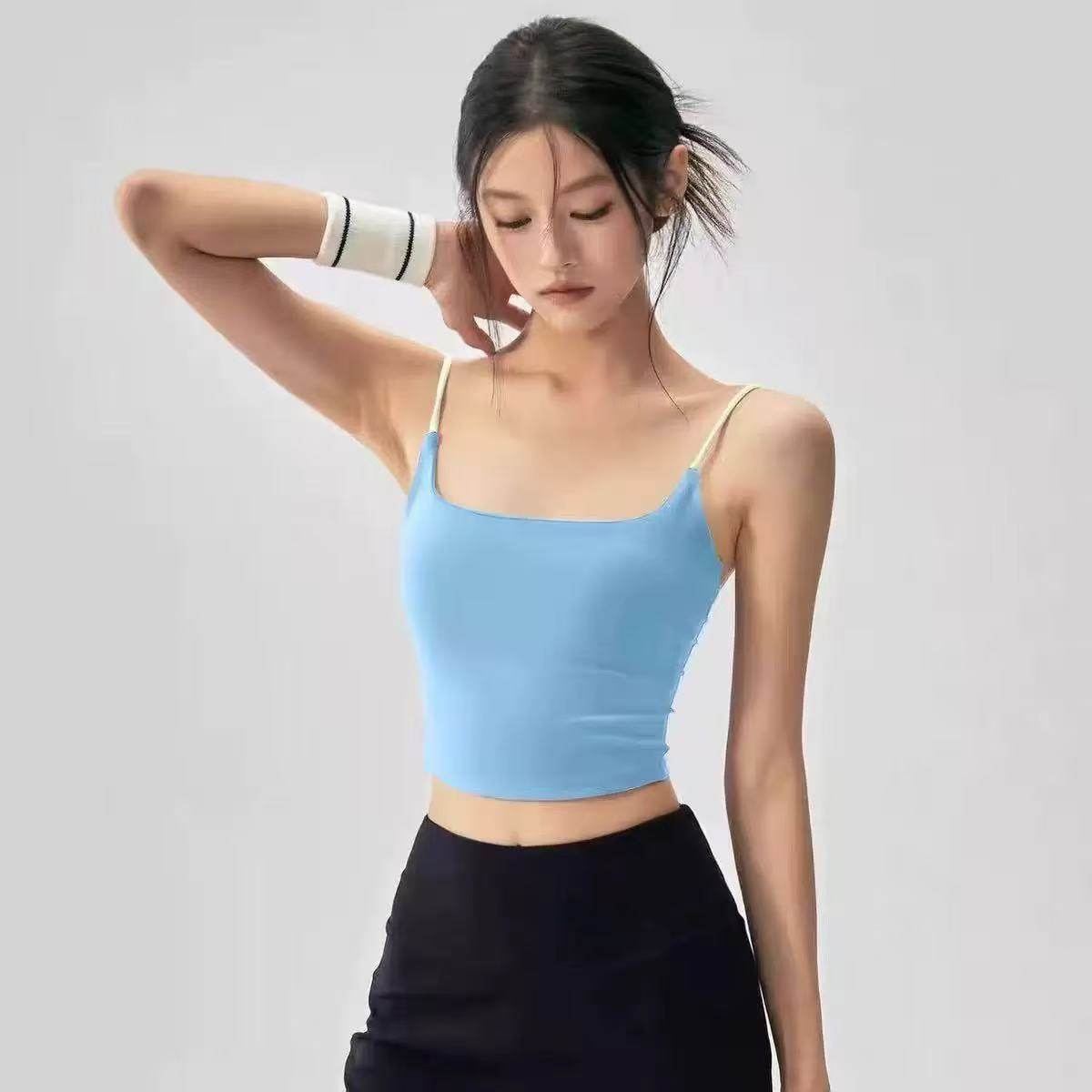 撞色吊带背心女带胸垫一体运动内衣瑜伽服上衣外穿健身文胸美背
