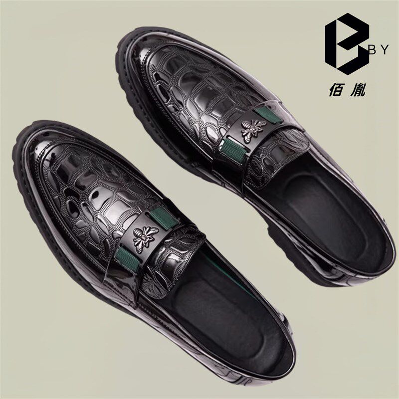 男鞋2025新款夏季透气英伦商务正装皮鞋尖头休闲皮鞋一脚蹬豆豆鞋