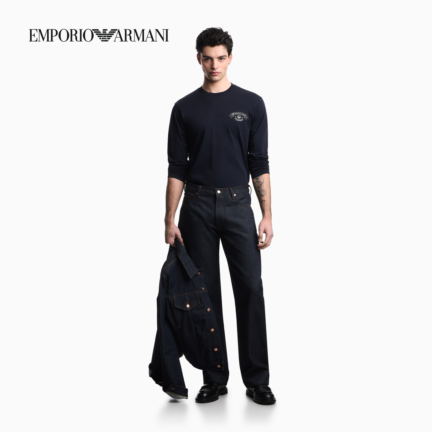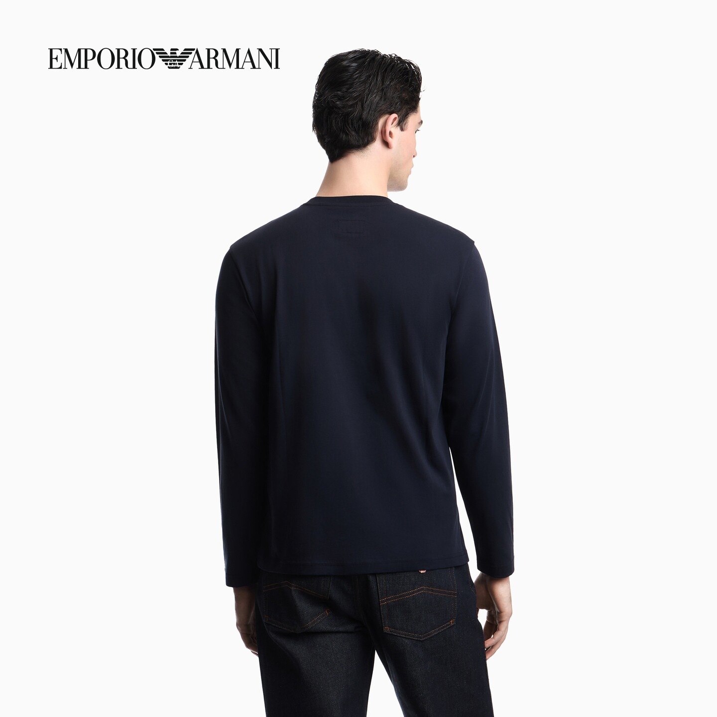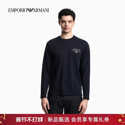 EMPORIO ARMANI/阿玛尼26年春季新款男士纯棉长袖正肩印花T恤官方