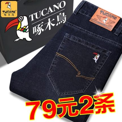 啄木鸟冬季新款牛仔裤男宽松直筒休闲弹力高腰加绒加厚款长裤男款