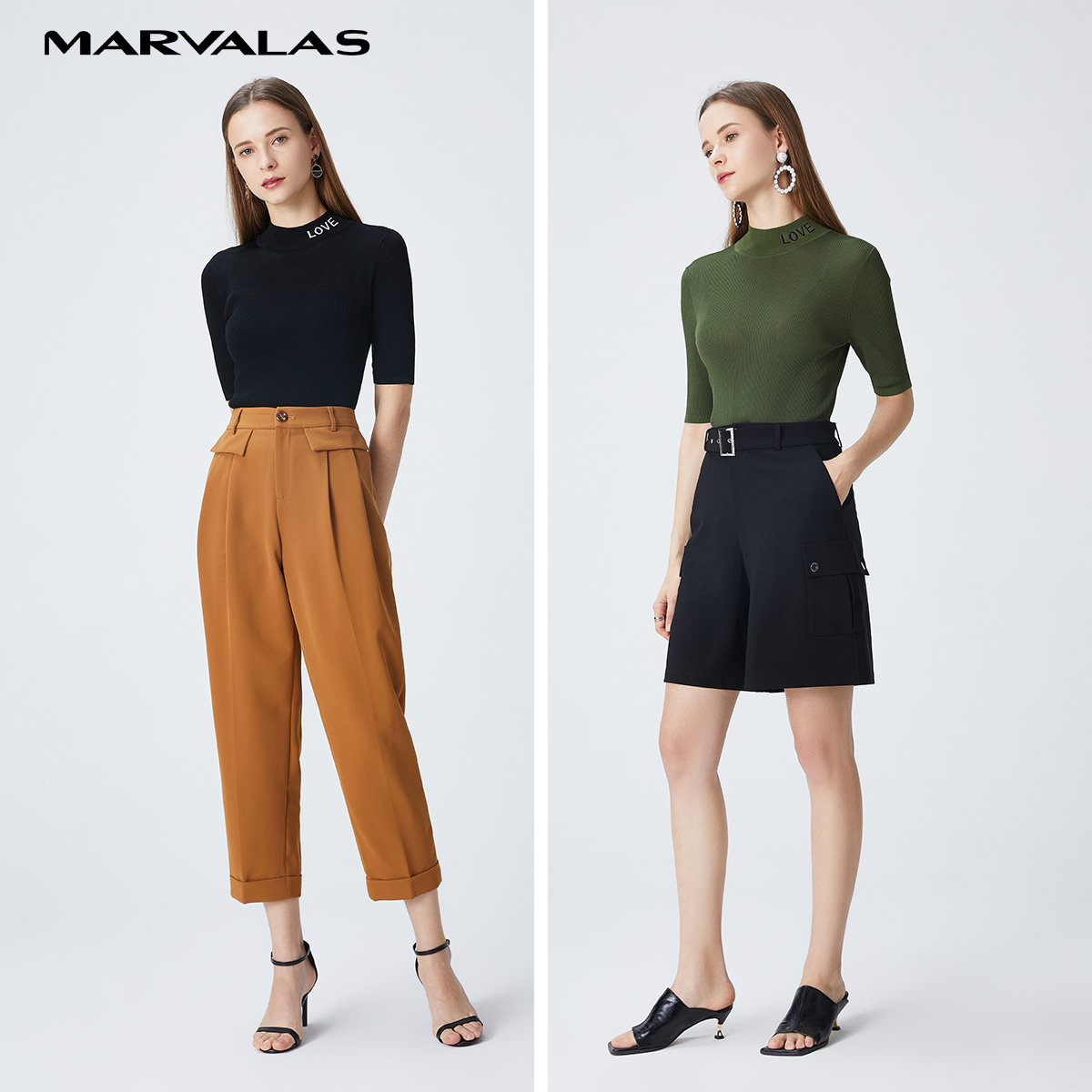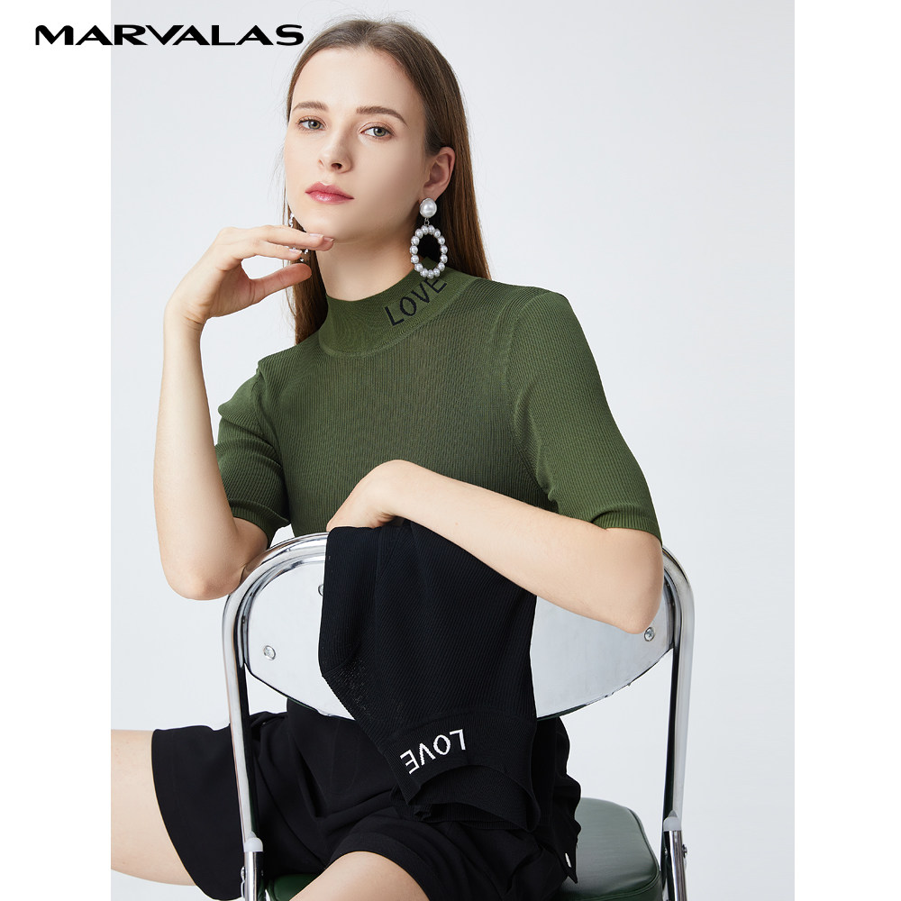 曼德诗针织衫打底女2025夏款薄款套头五分袖修身内搭上衣气质百搭