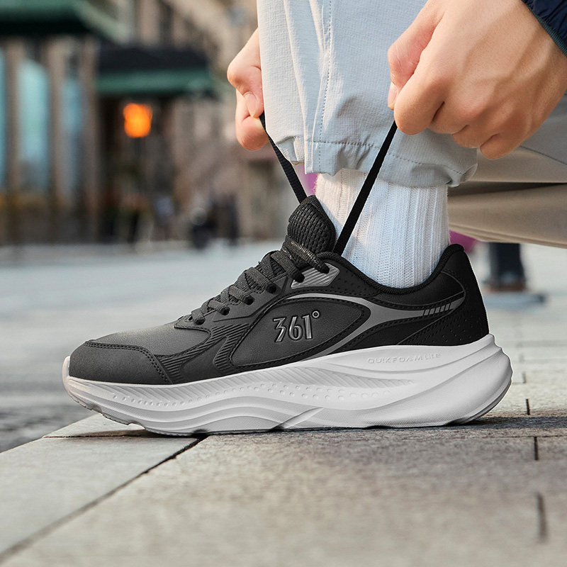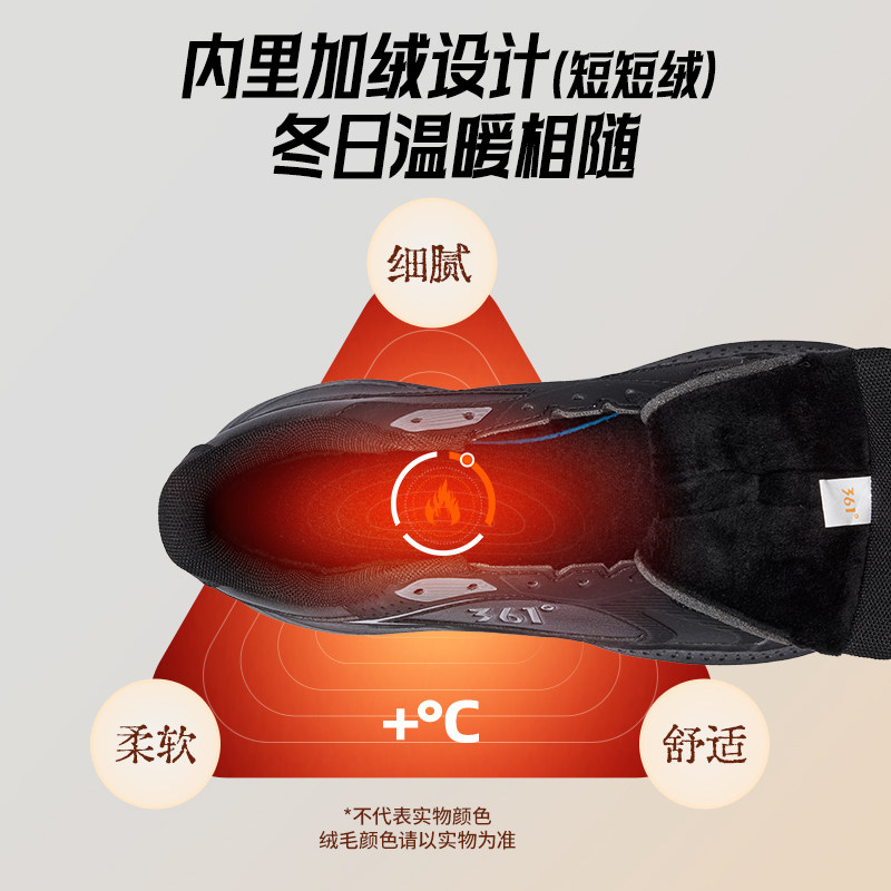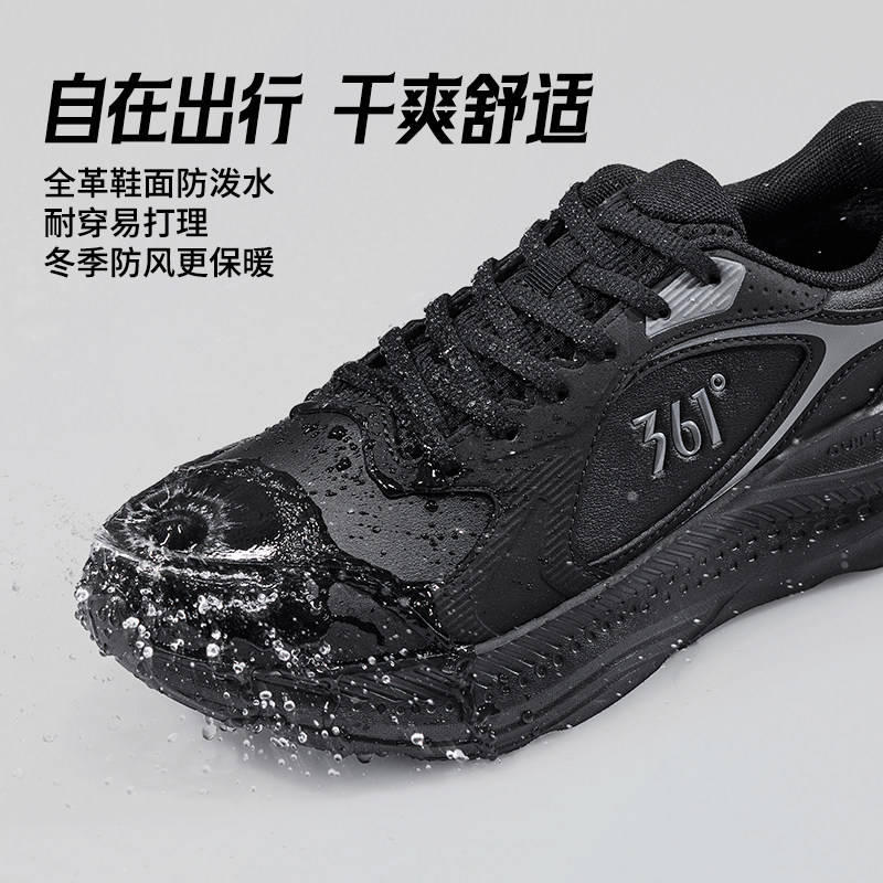 361秋冬男鞋2025新款运动鞋革面防水休闲鞋加绒保暖棉鞋黑跑步鞋