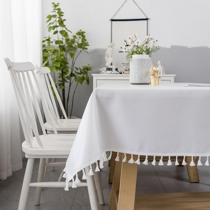 V45O木木家 棉麻防水防油免洗布艺桌布餐桌茶几长方形家用纯白色