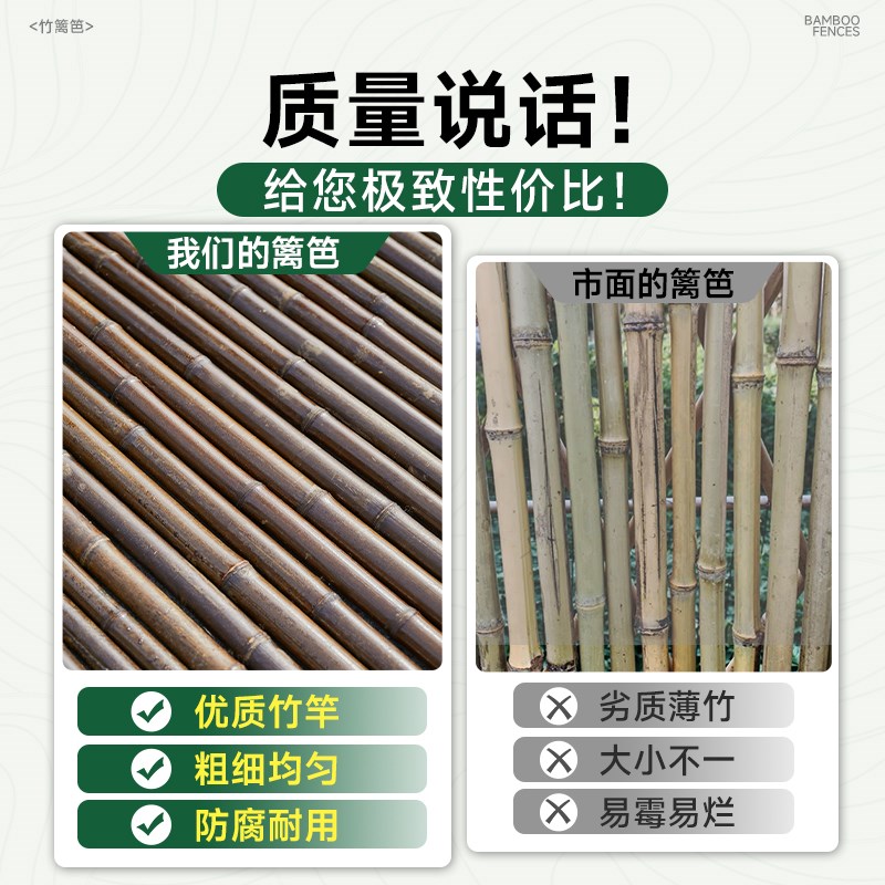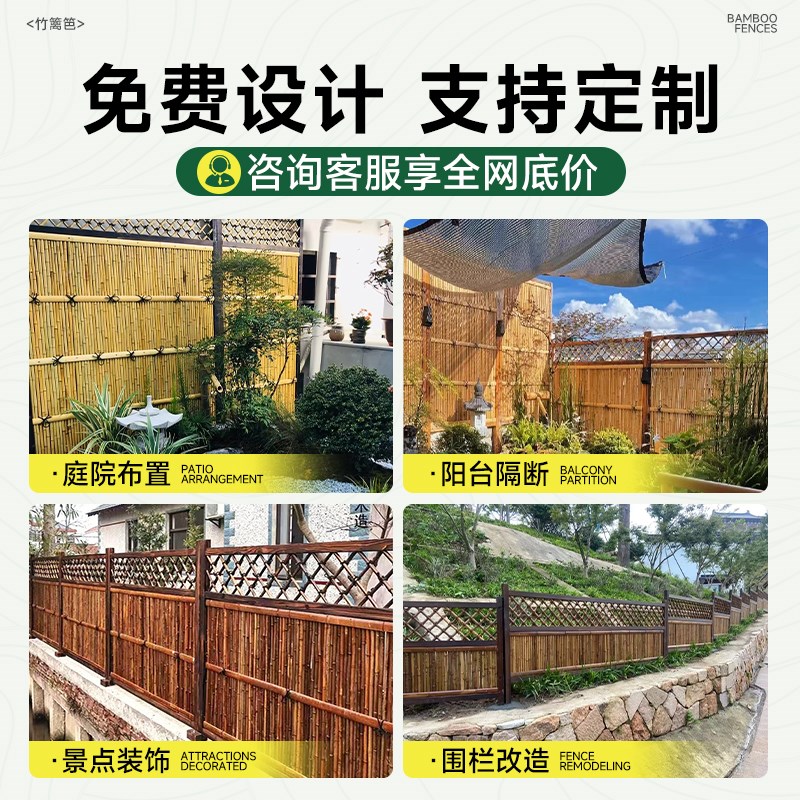 定制竹篱笆户外围墙栅栏护栏竹排竹门花园庭院子防腐木竹子围栏杆