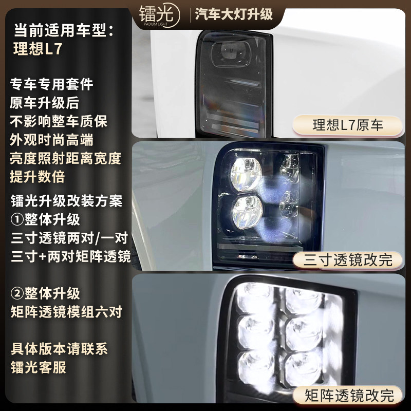 理想L7汽车透镜LED激光炮大灯矩阵模组双直射远近光一体升级改装