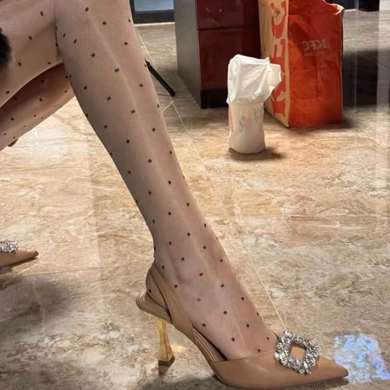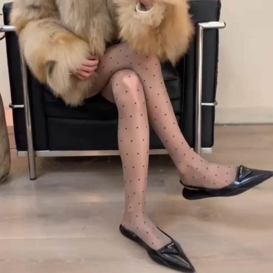 波点丝袜早春穿搭高级感肤色黑色丝袜女jk透肤防勾丝连裤打底袜子