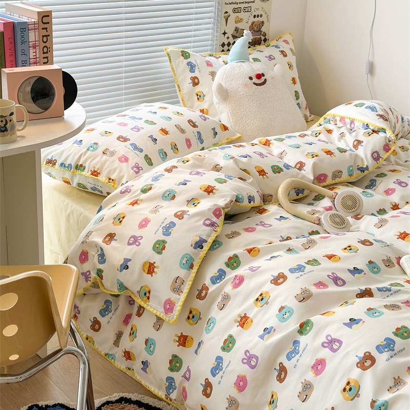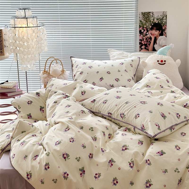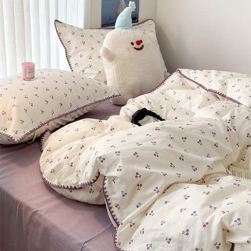 紫色小小樱桃全棉四件套亲肤纯棉少女被套1.5m1.8米裸睡床上用品