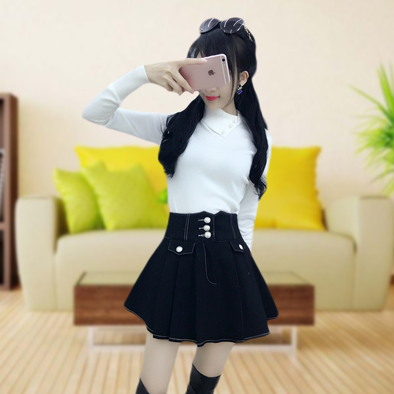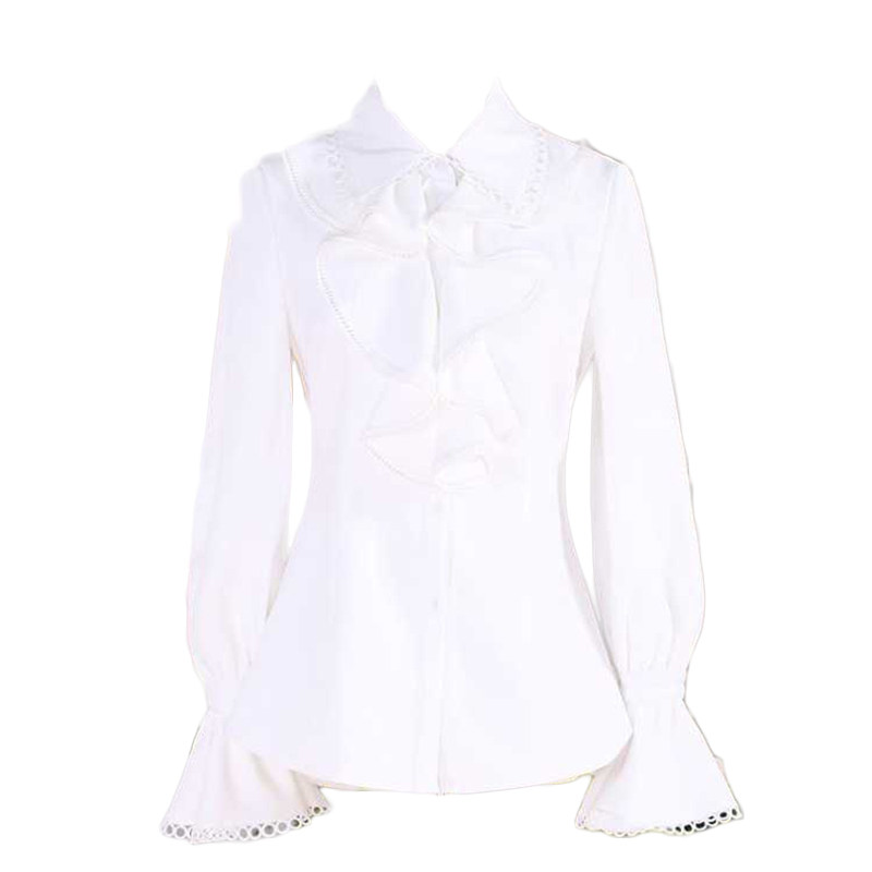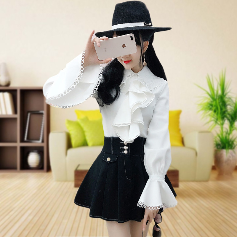 套装韩版白色荷叶长袖职业女装衬衫女修身百搭黑色微喇叭长裤女潮