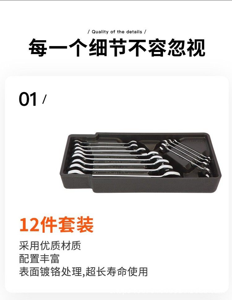 钢盾S025024/25双开口两用扳手梅花扳手12件套组合套装汽修工具