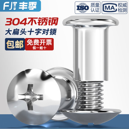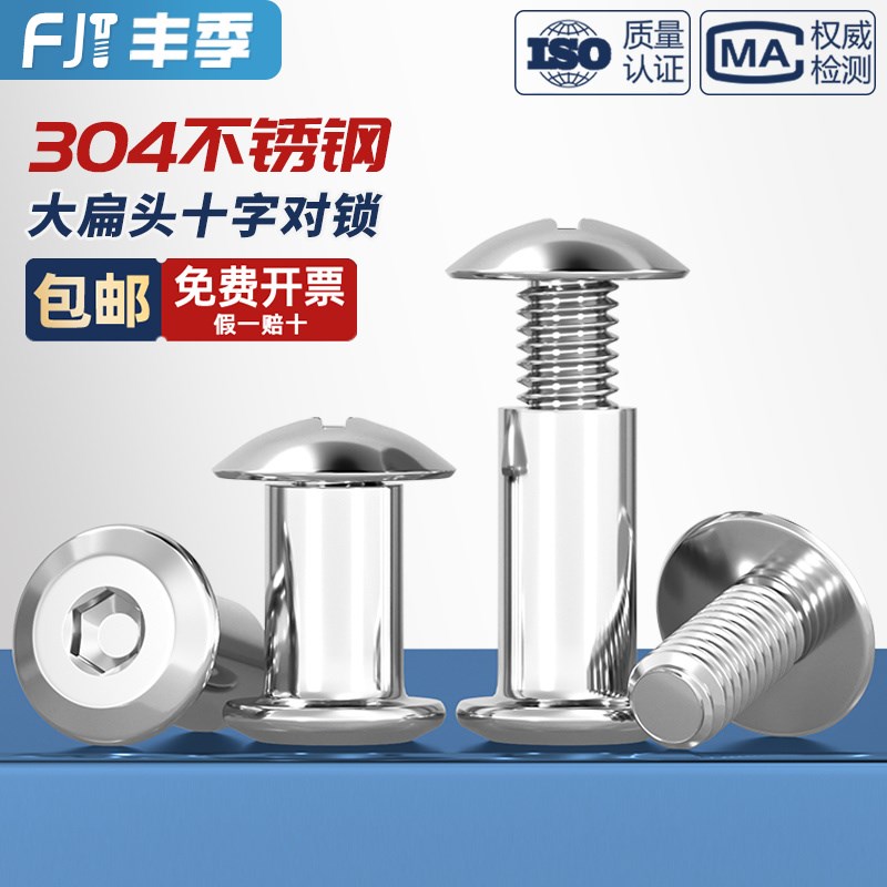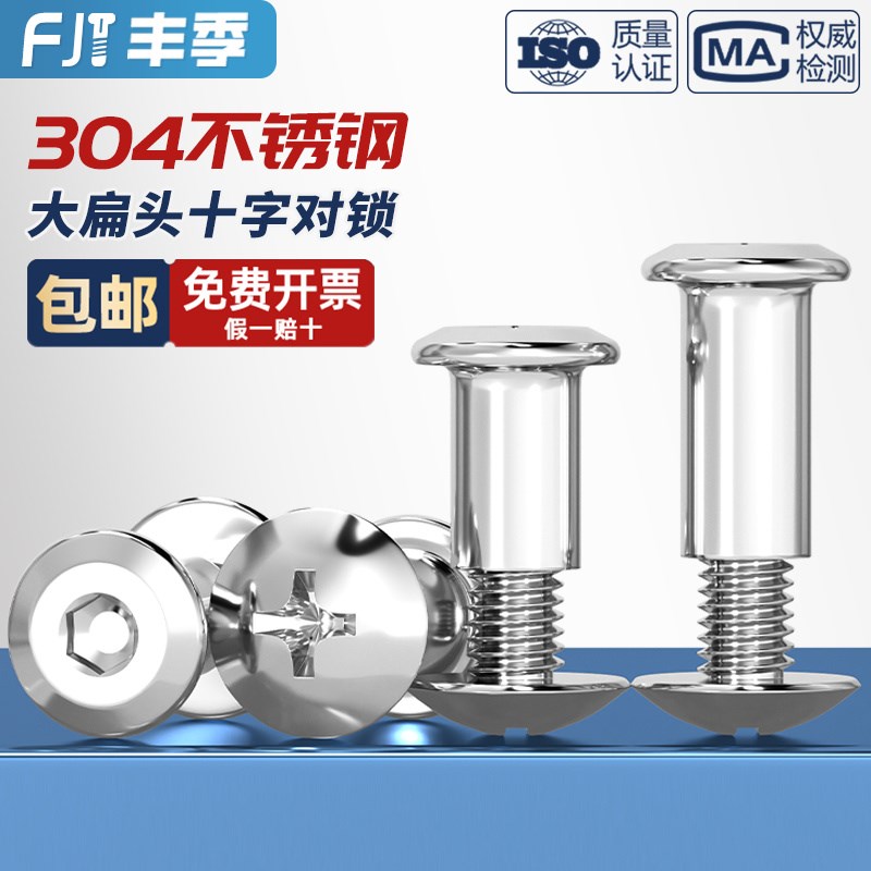 304不锈钢大扁头十字子母铆钉对接对锁螺丝螺母夹板家具组合套装