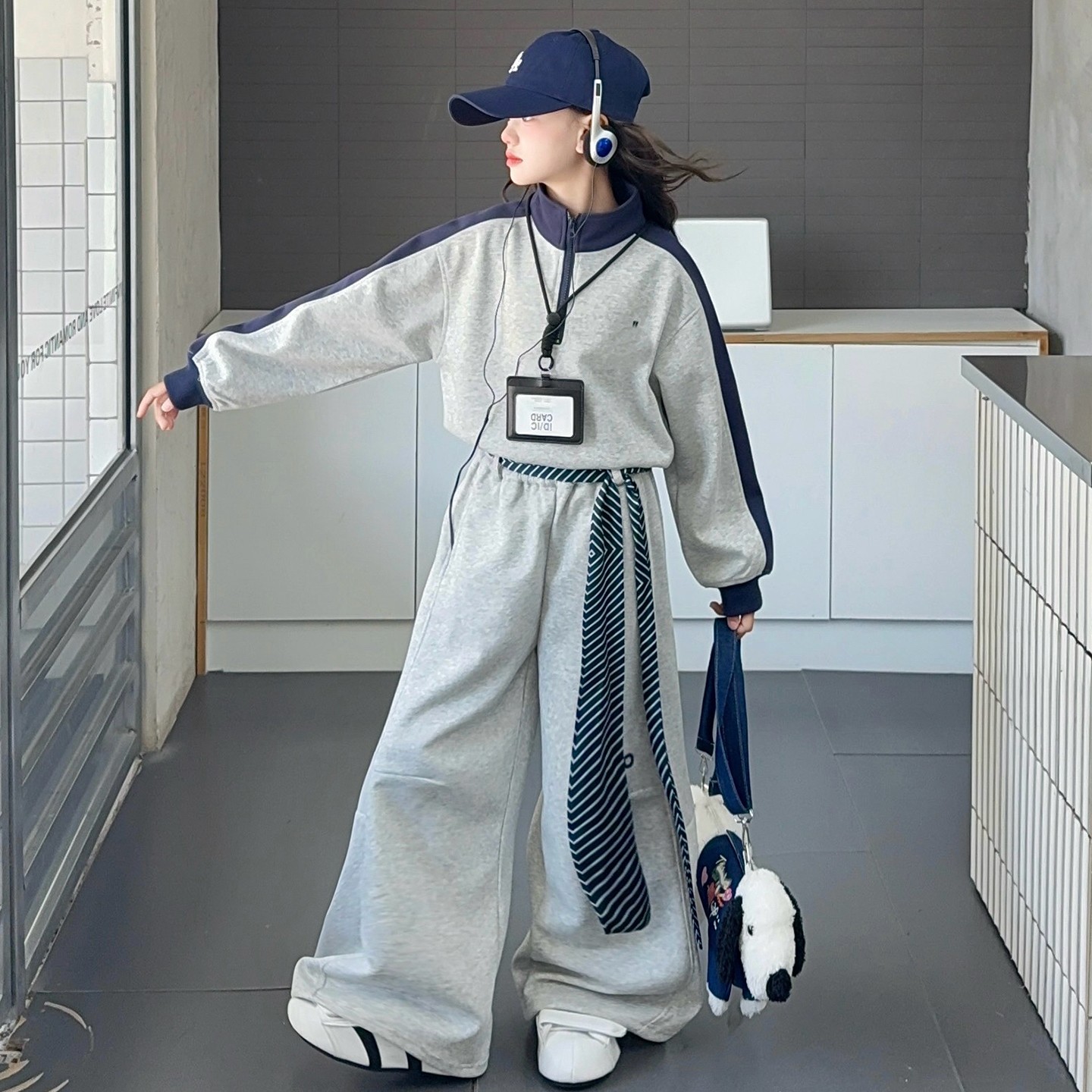 女童秋冬季套装2025新款休闲女孩立领拼色卫衣卫裤两件套