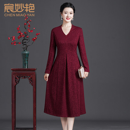高贵优雅气质连衣裙中长款喜婆婆喜妈妈婚宴礼服显瘦洋气A字裙