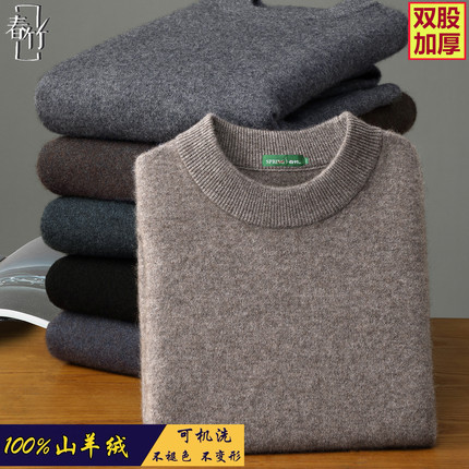 春竹100%羊绒衫男士圆领毛衣四平双股加厚保暖中年打底针织羊毛衫