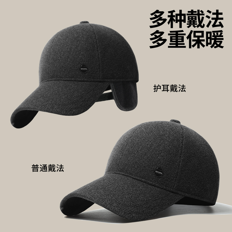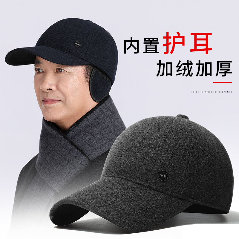 中老年帽子男士秋冬休闲防风加厚保暖护耳帽老人鸭舌帽户外棒球帽