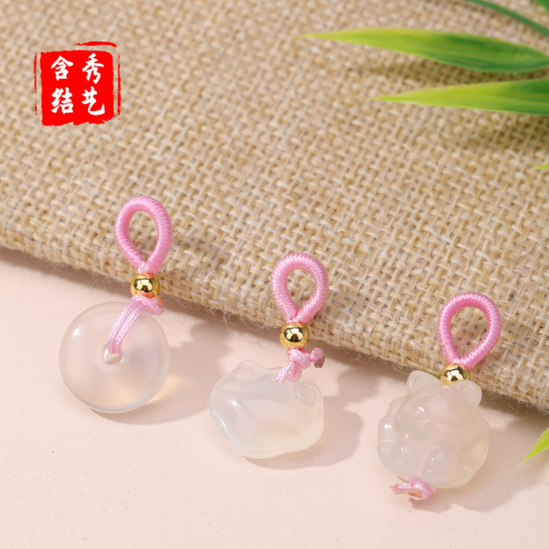 天然荔枝冻白玛瑙吊坠小提溜 项链diy手链手串手工编织包挂件配件