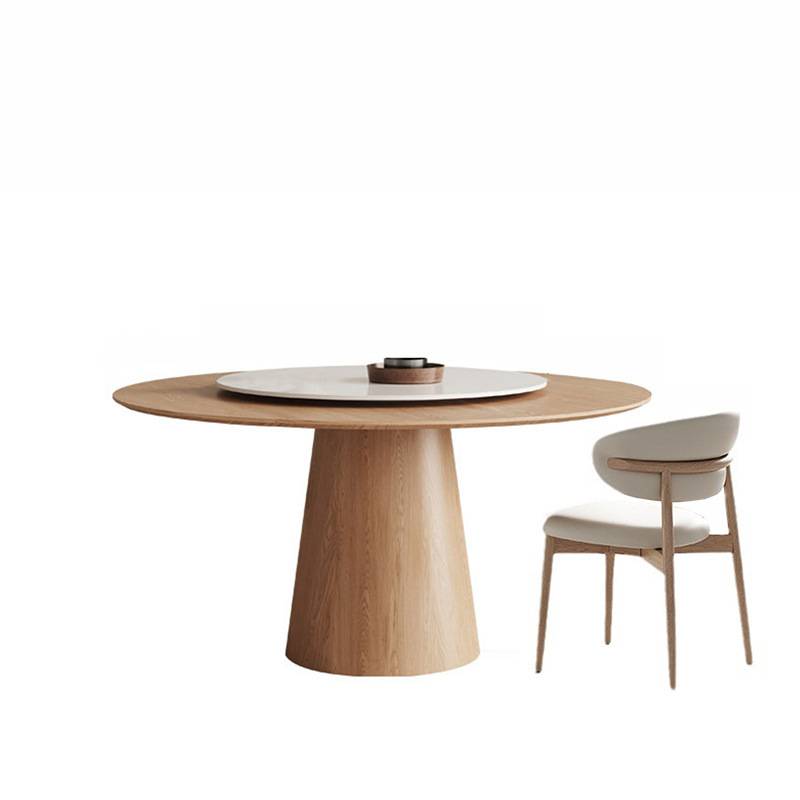 法式奶油风原实木白蜡木圆形餐桌椅子家用小户型餐厅吃饭桌带转盘