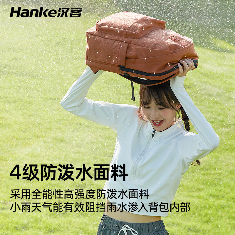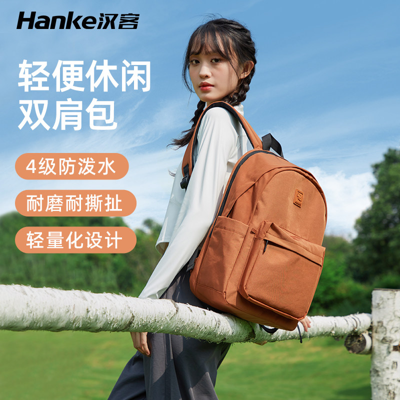 汉客新款户外大容量防水双肩包女轻便旅行休闲电脑背包男学生书包