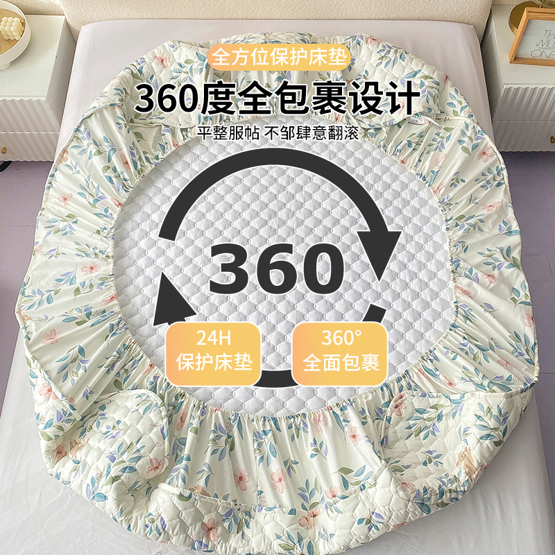 A类全棉夹棉床笠罩单件加厚席梦思床垫保护套100纯棉防滑床单床罩