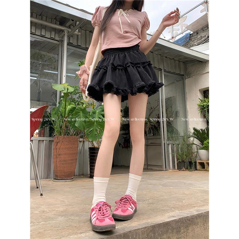 甜美风蕾丝花边蛋糕裙白色半身裙女夏季小个子显瘦高腰A字裙短裙