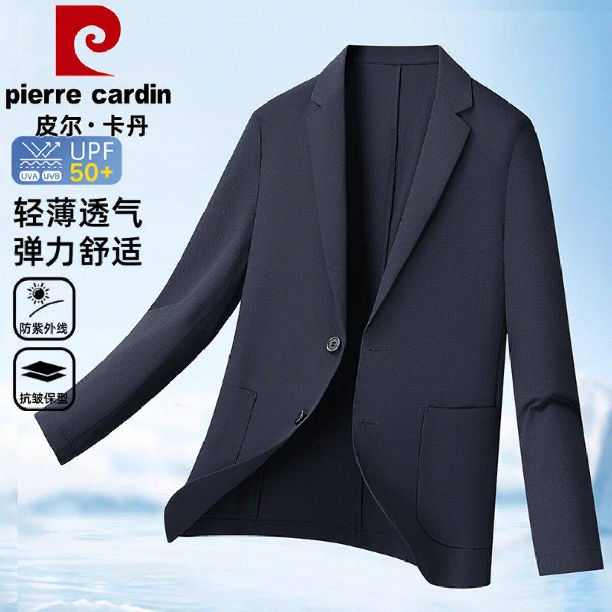 皮尔卡丹男士冰丝凉感防晒衣西服夏季薄款弹力商务西装单西外套南