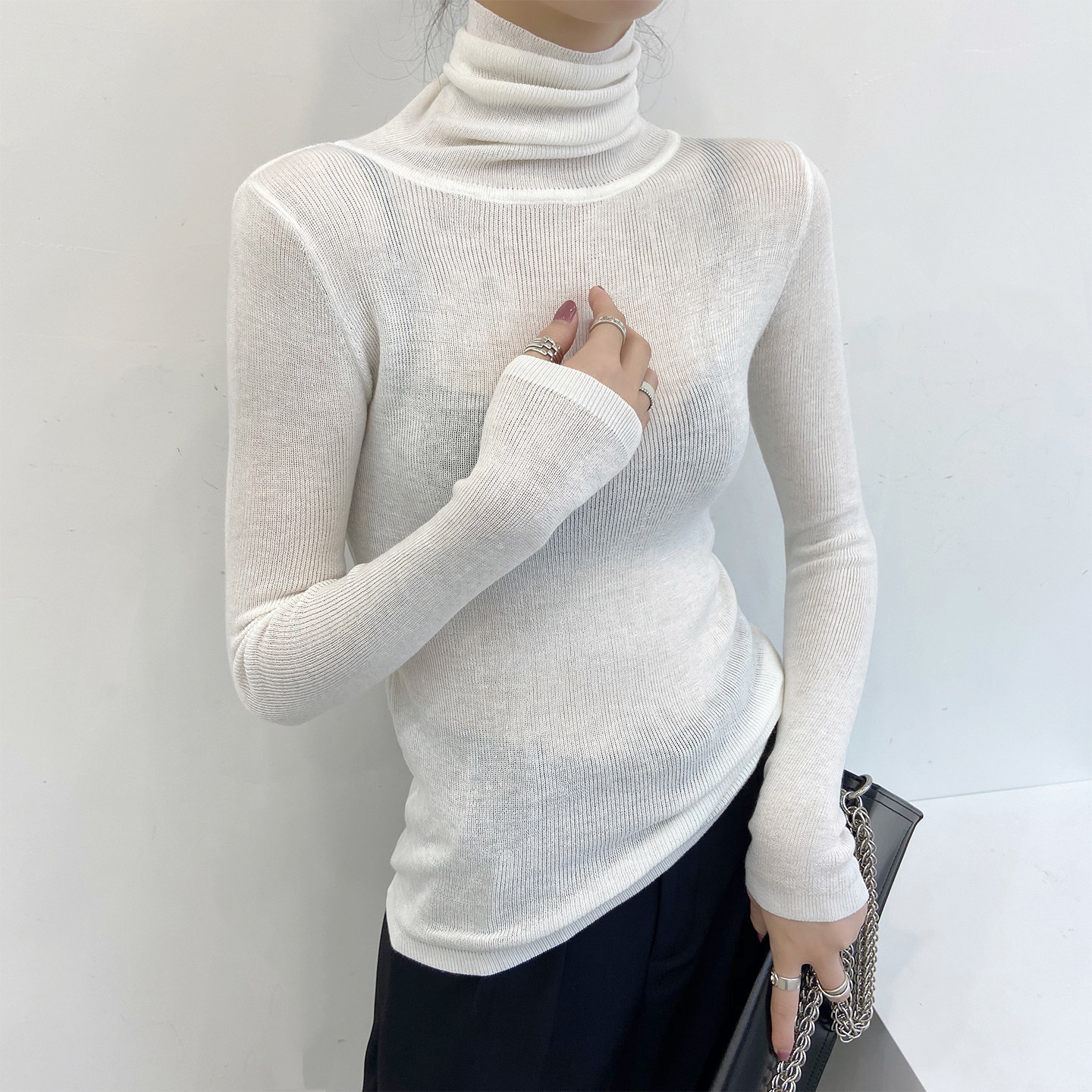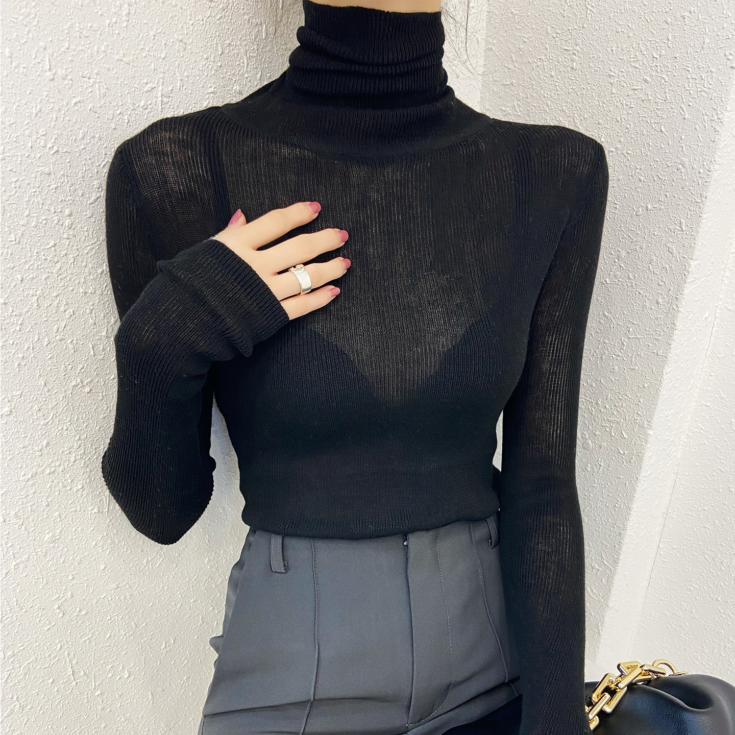 高领羊毛高质量针织打底衫女内搭灰色薄款超好看修身秋冬微透毛衣