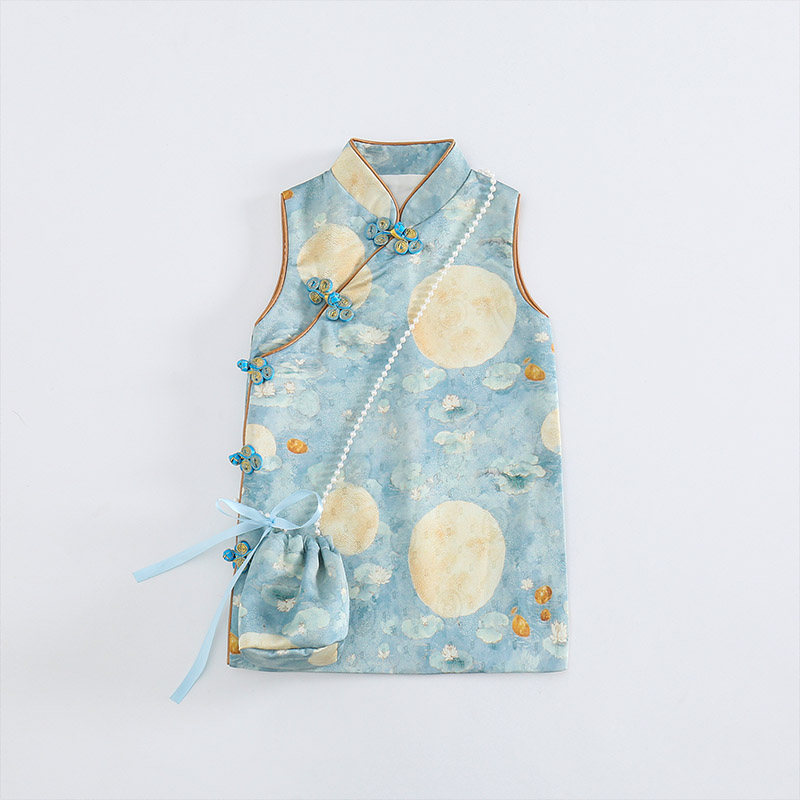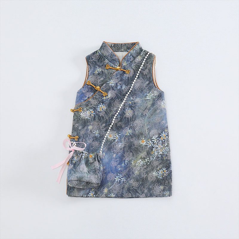 女童旗袍马甲裙儿童日常汉服中式连衣裙唐装国风公主裙古风背心裙