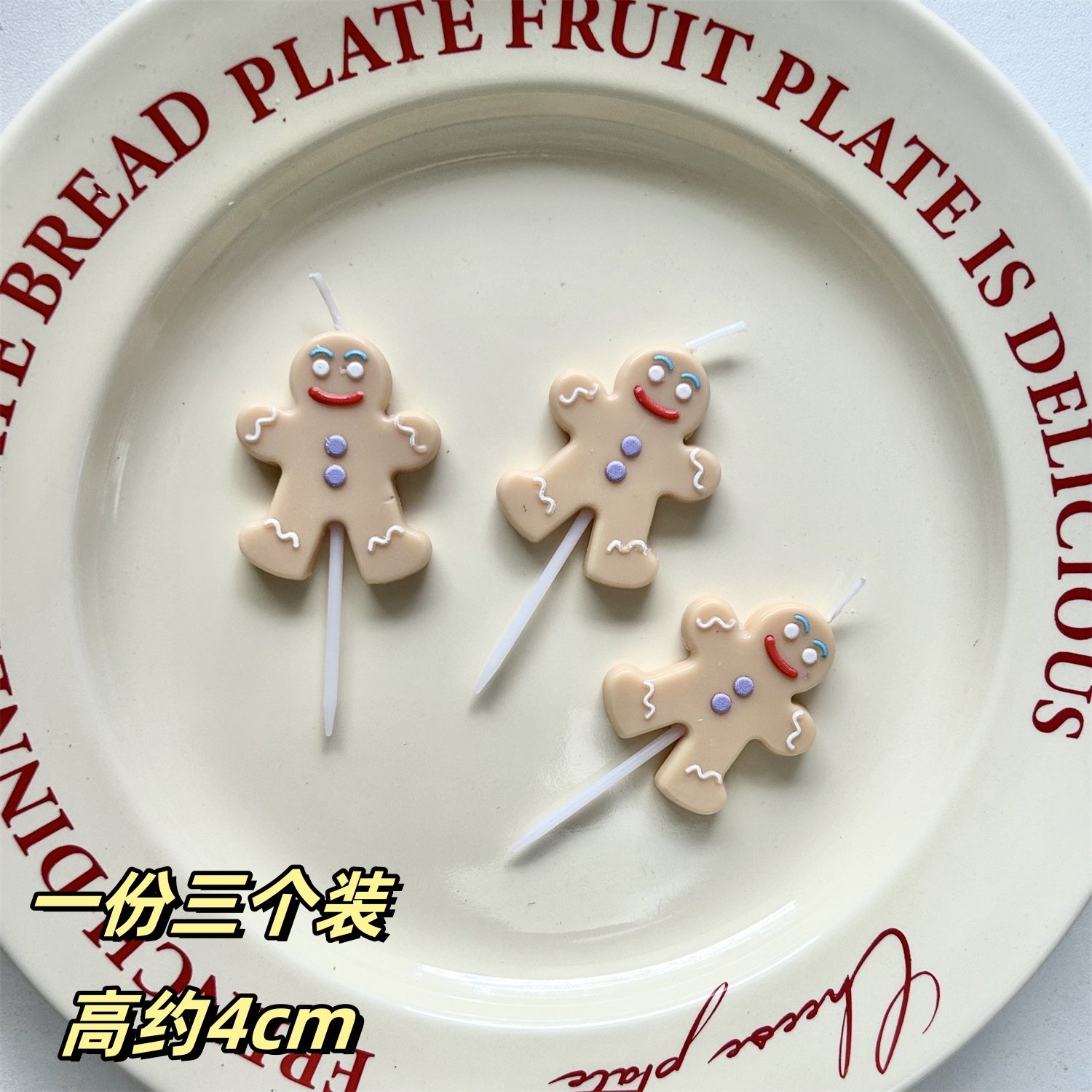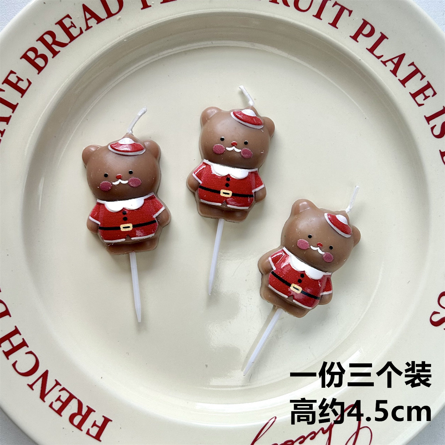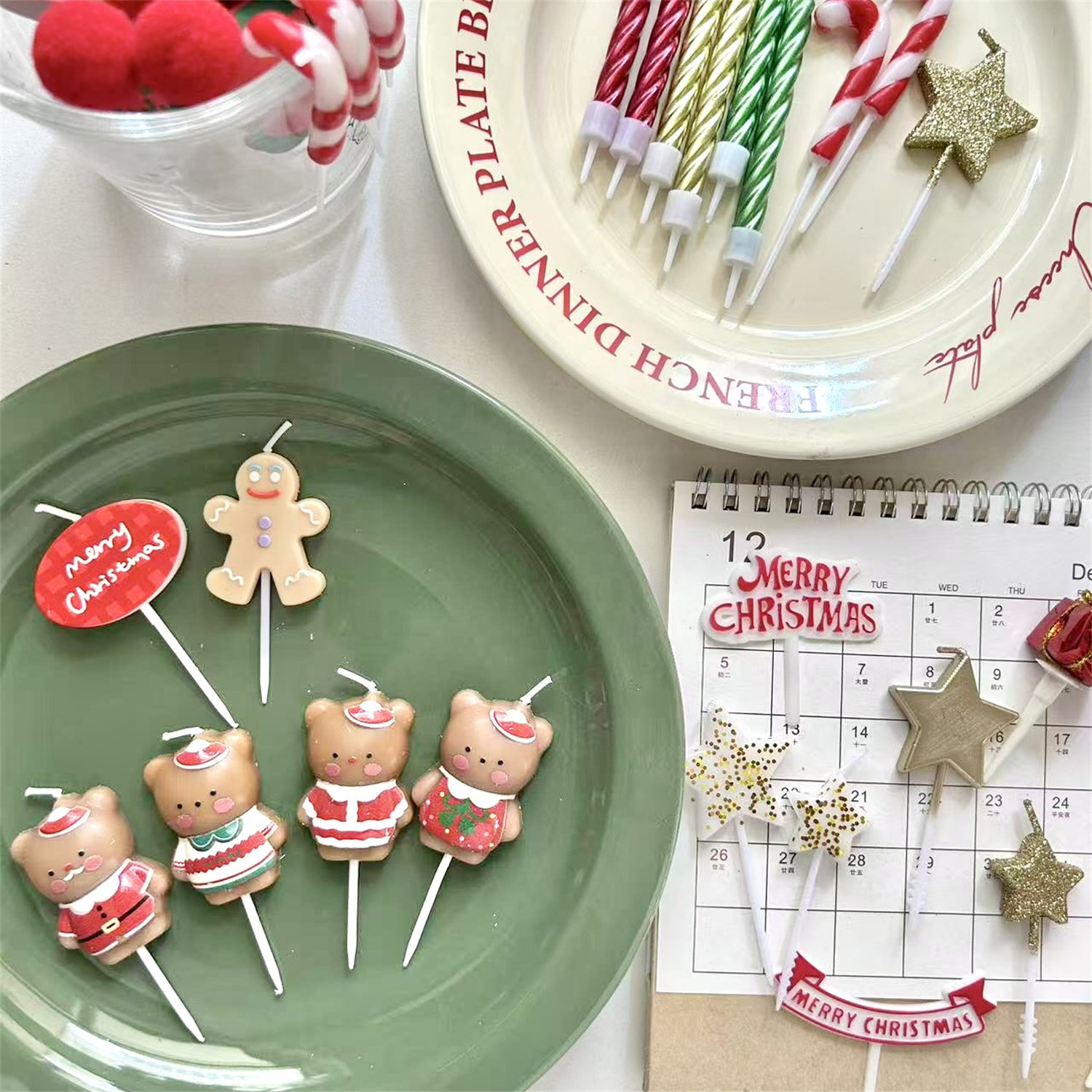 烘焙秘密 圣诞节圣诞小熊蛋糕蜡烛装饰 圣诞钩拐杖圆牌姜饼人蜡烛