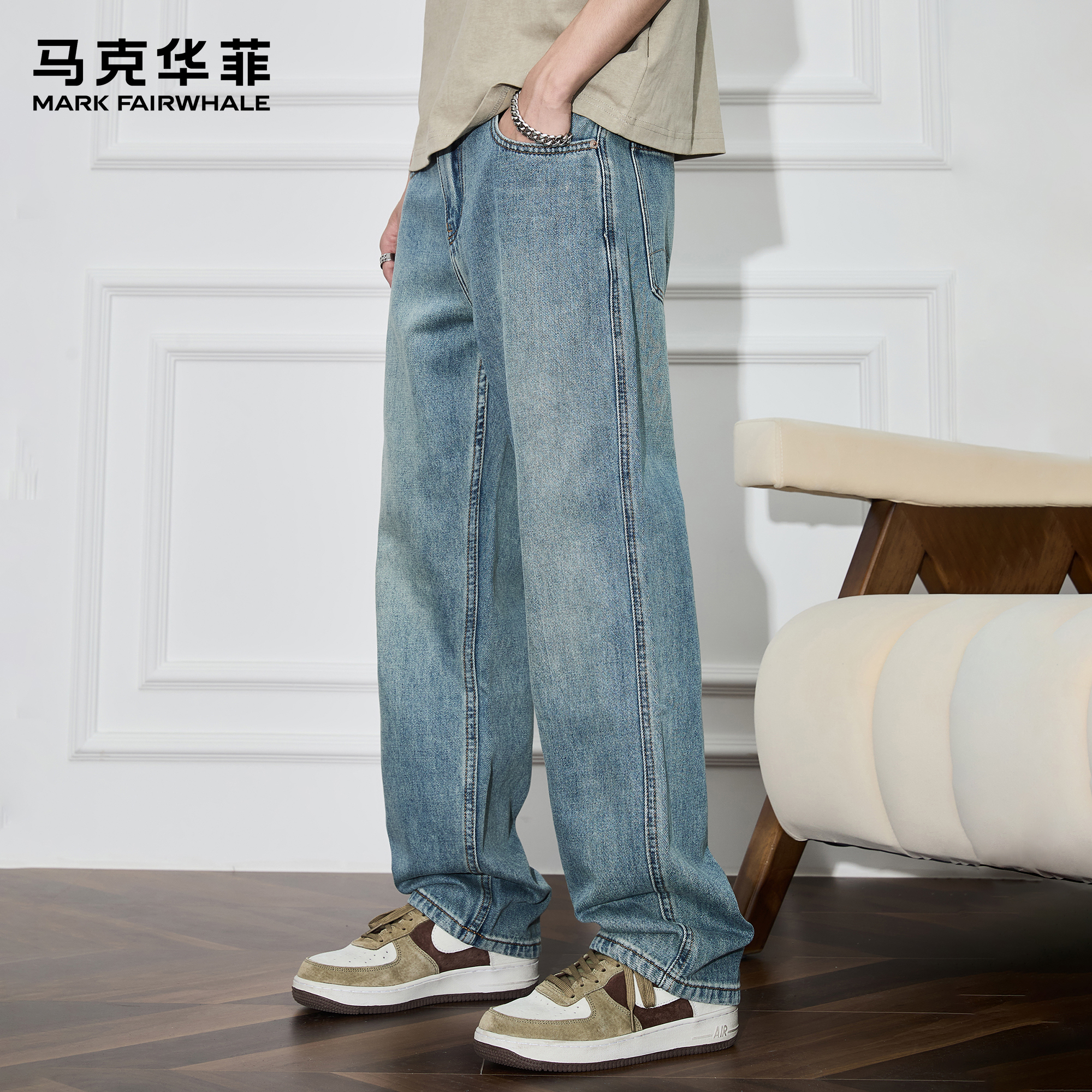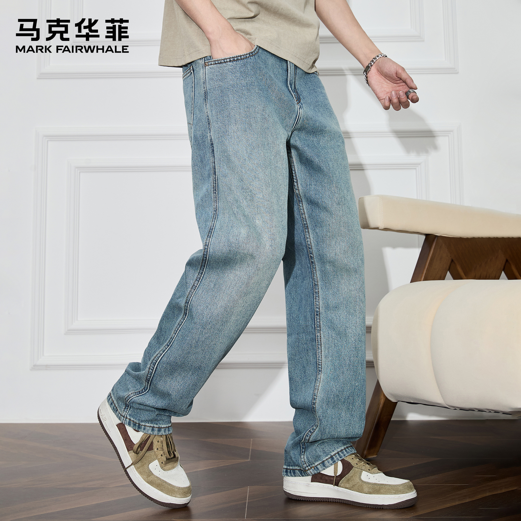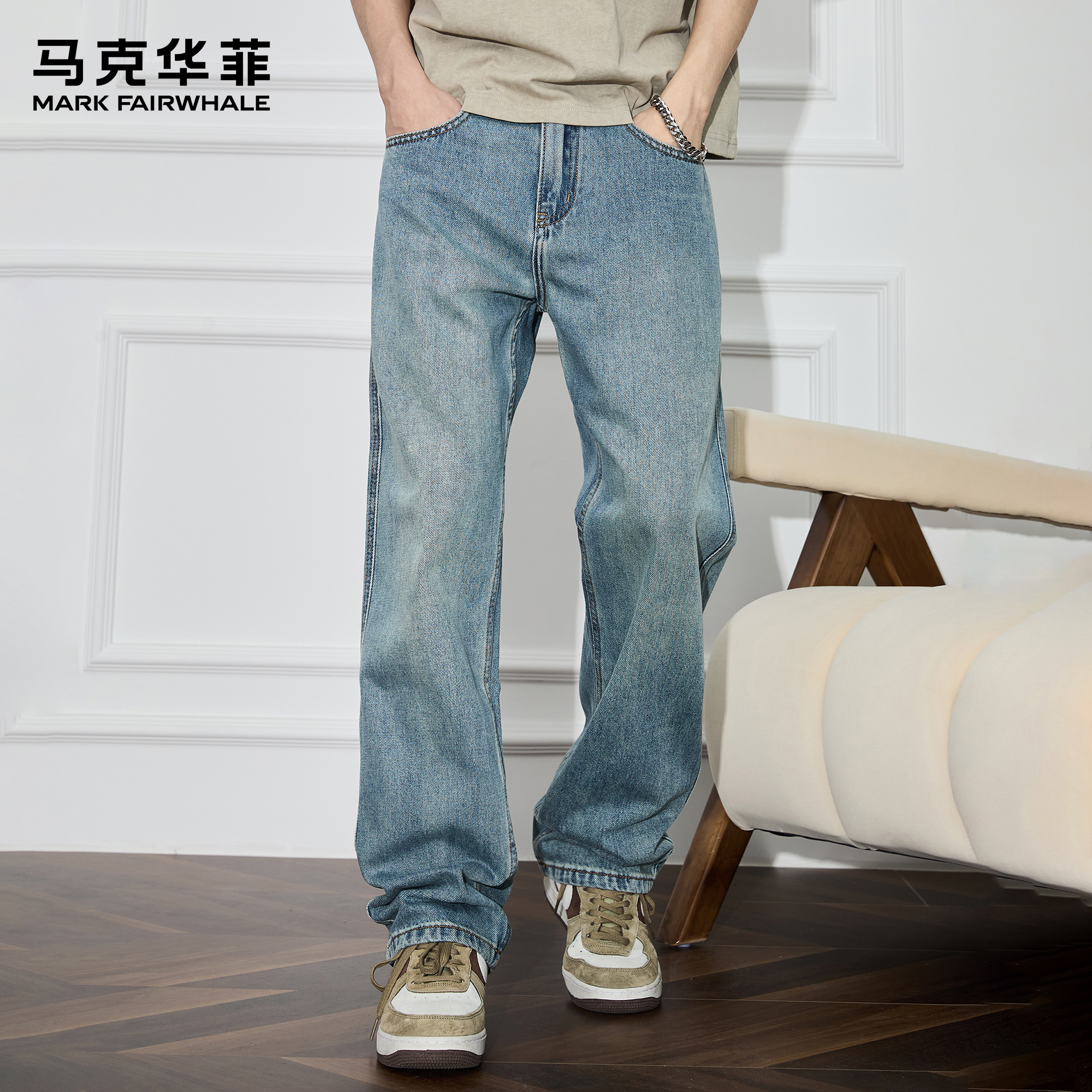 马克华菲美式复古牛仔裤男款春秋潮流宽松水洗cleanfit做旧阔腿裤