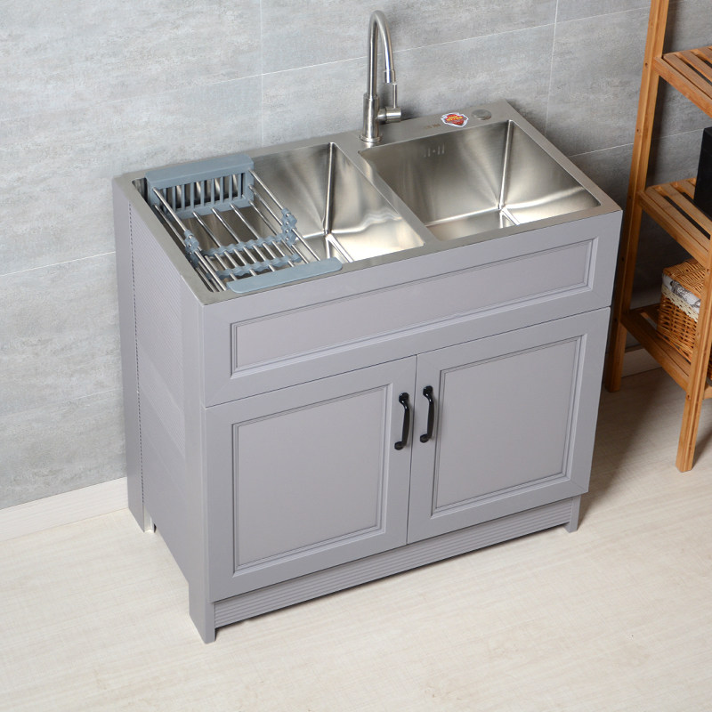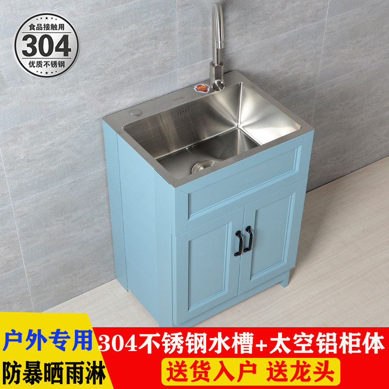新不锈钢洗衣池304 阳台太空铝洗衣柜落地家用一体洗Y菜洗碗池厨