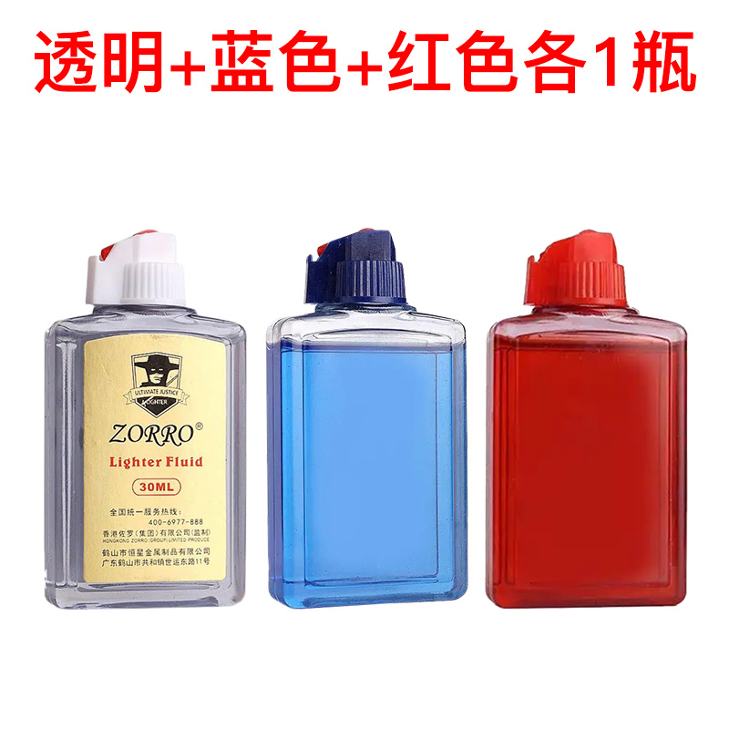 打火机油彩色佐罗煤油30ML透明油仓红蓝白Zorro打火机通用燃油