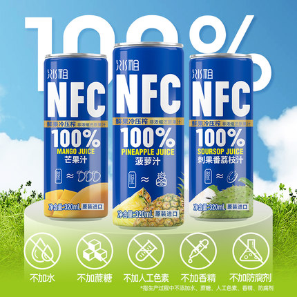 九日越南进口nfc菠萝芒果荔枝320ml罐装100%鲜果压榨果肉果汁饮料